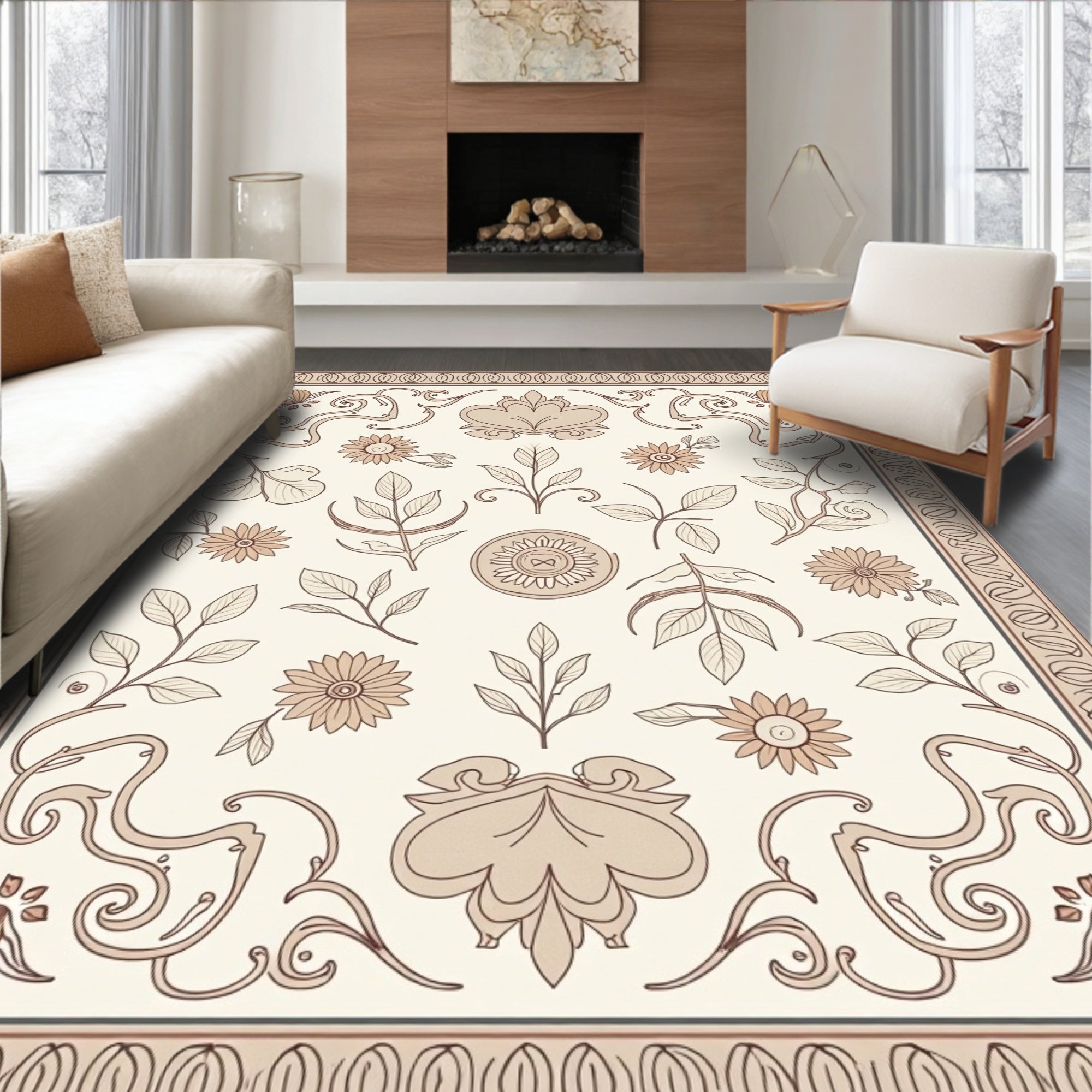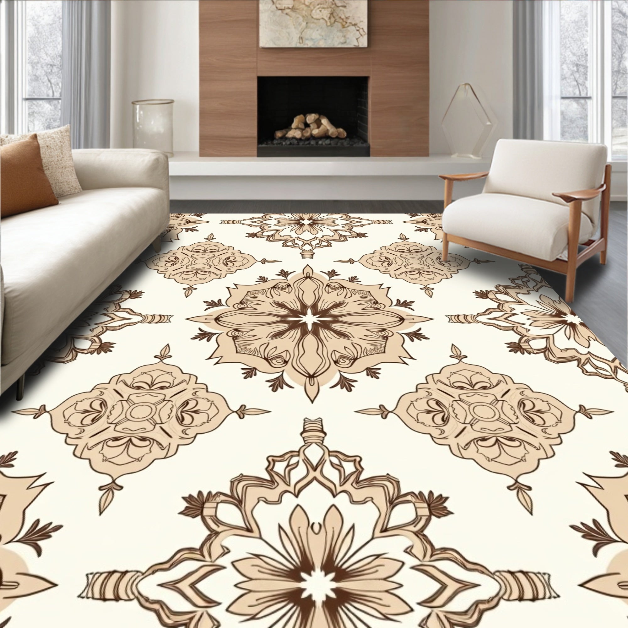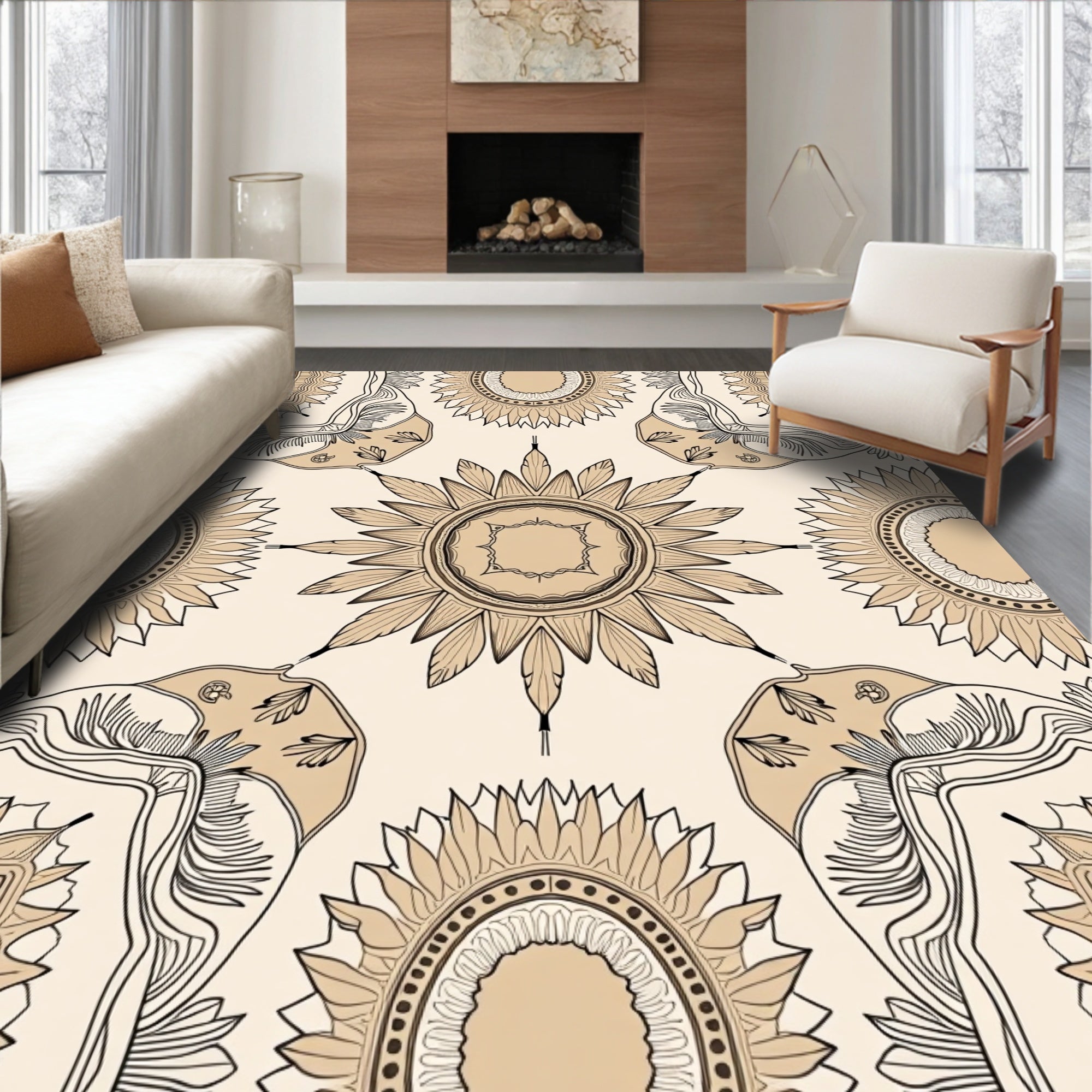 Ethereal Floral Medallion Sophisticated Delicate Craftsmanship Unique (Beige)