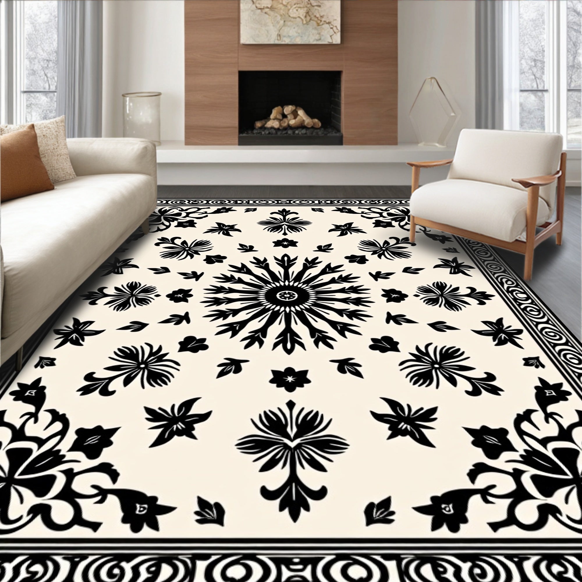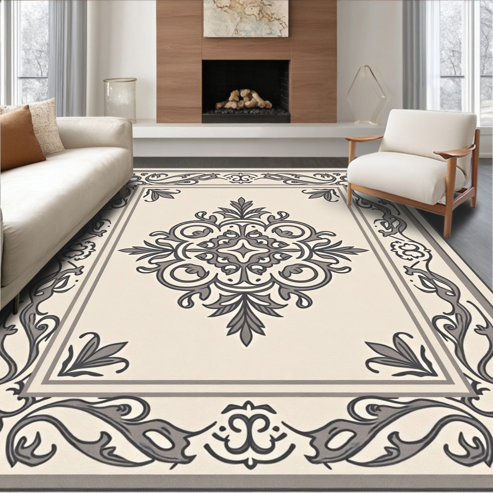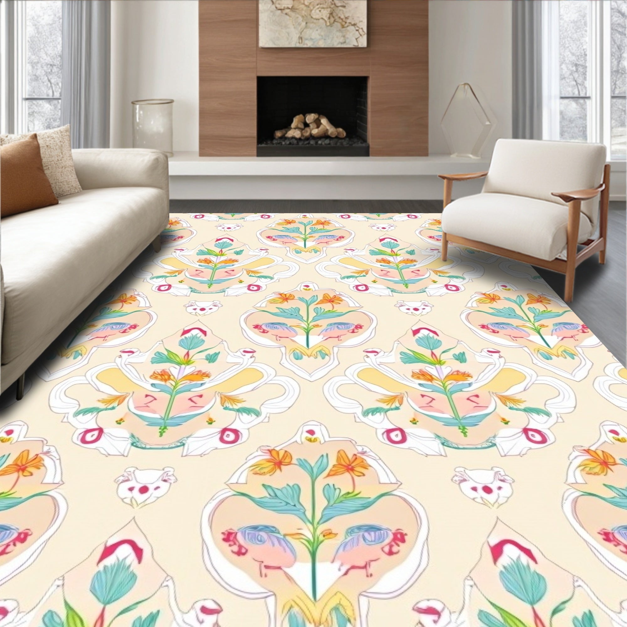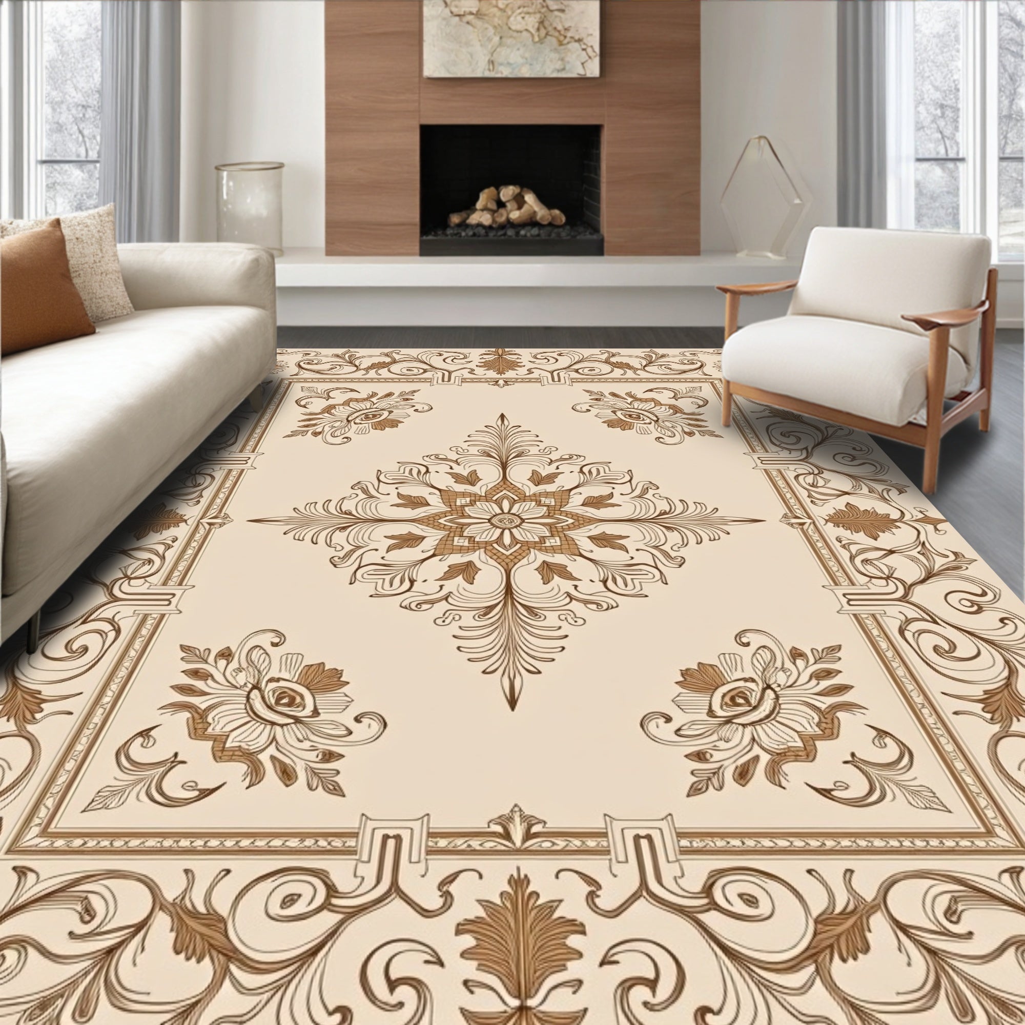 Ethereal Floral Medallion Sophisticated Delicate Craftsmanship Unique (Beige)