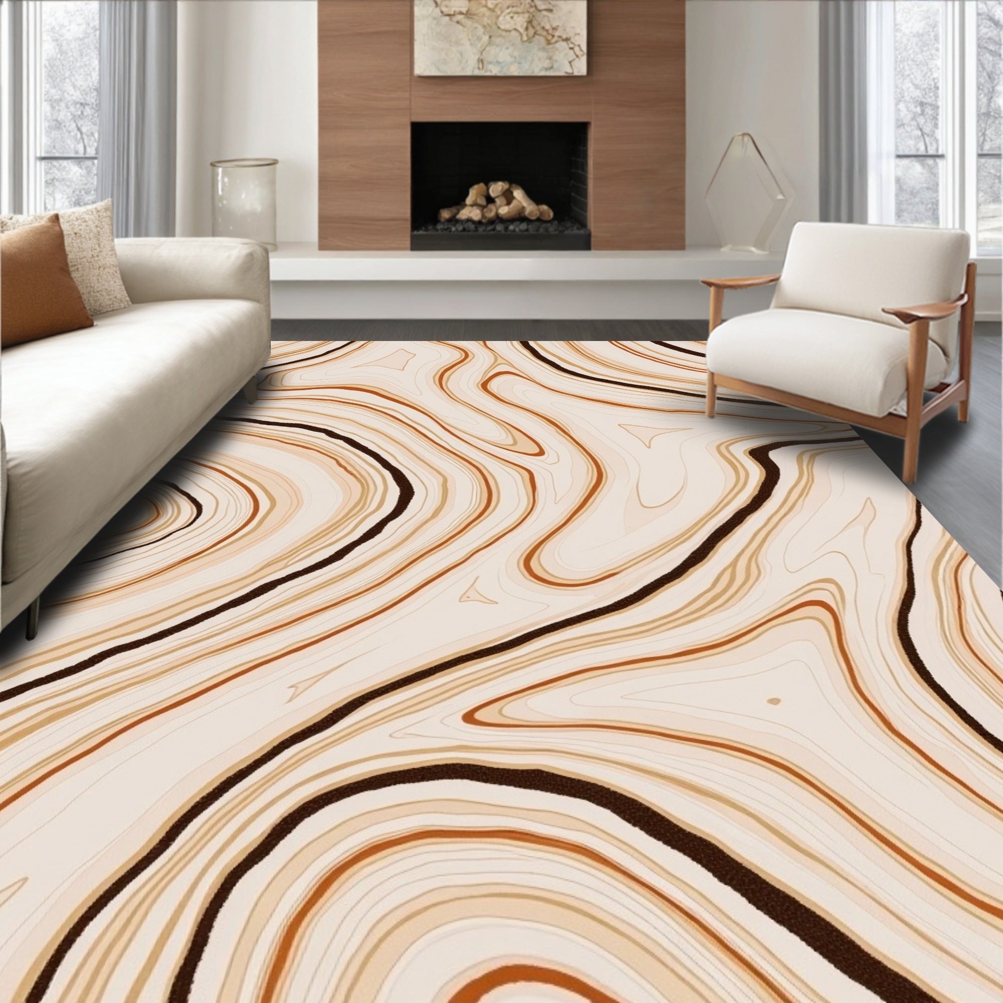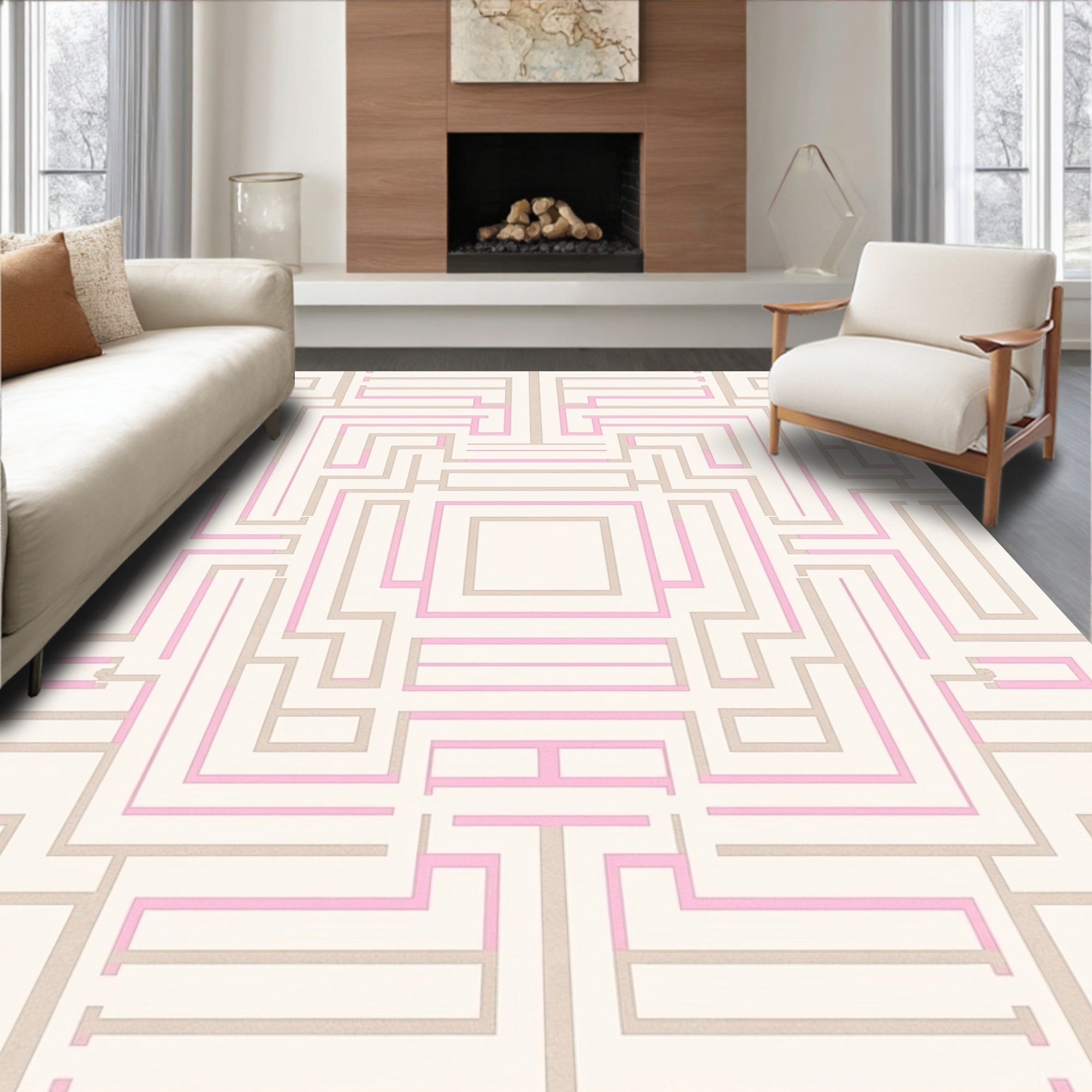 Modern Symmetrical Maze Labyrinth Artistic Luxury Aesthetic (Beige)