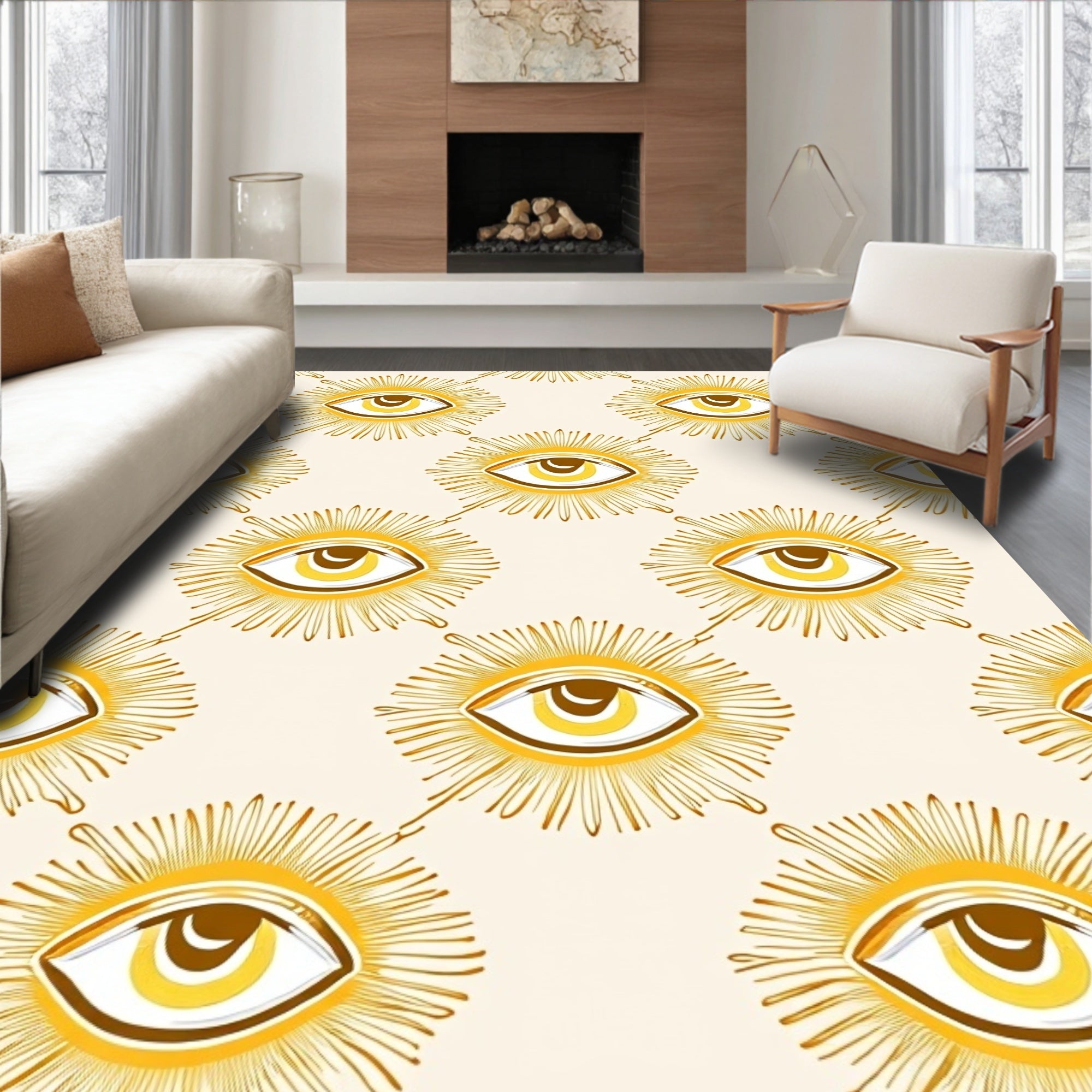 Mystical Evil Eye Protection Symbol With Radiant Sunburst Detail (Beige)