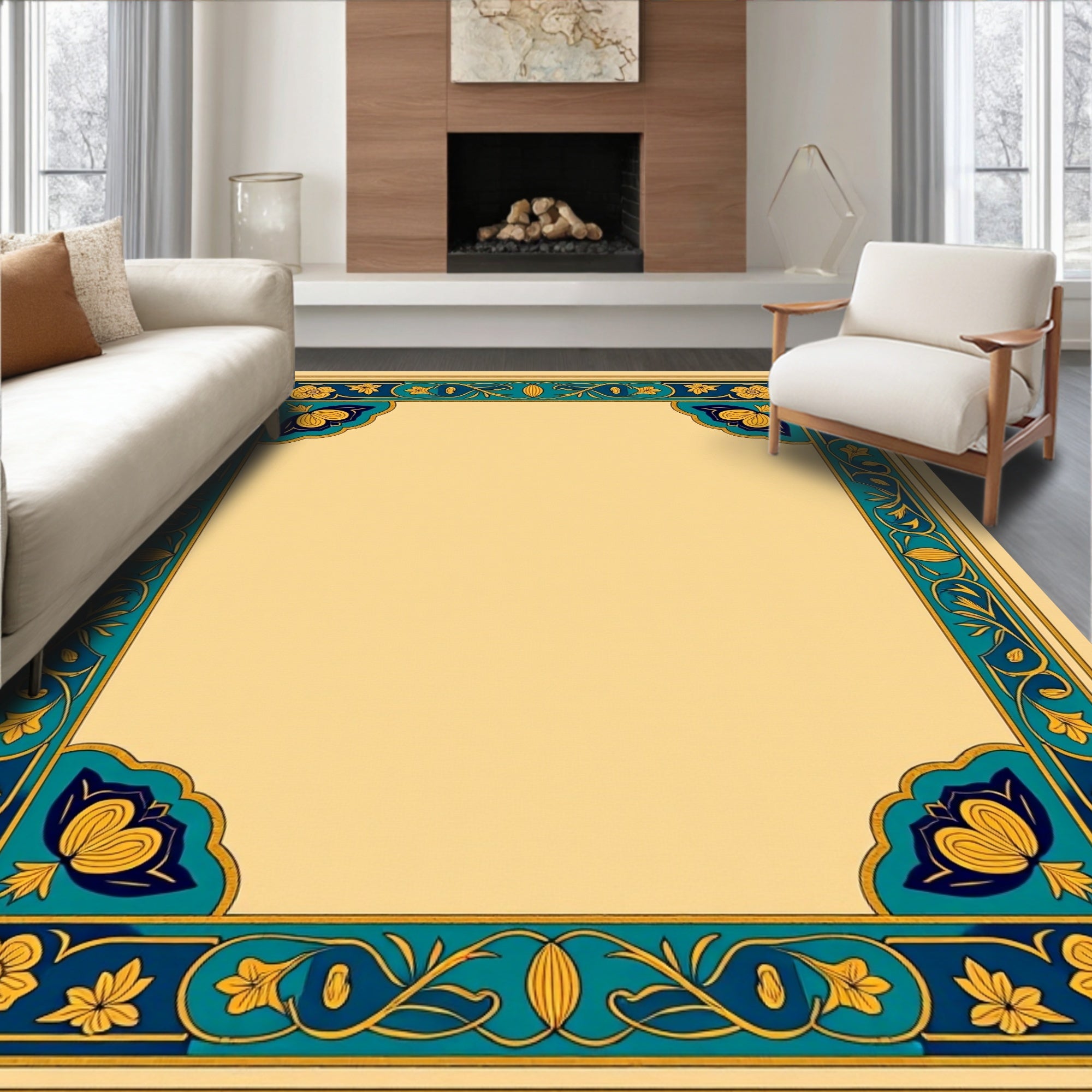 Stylish Contemporary Bordered Textile With Luxurious Embellishment (Beige)