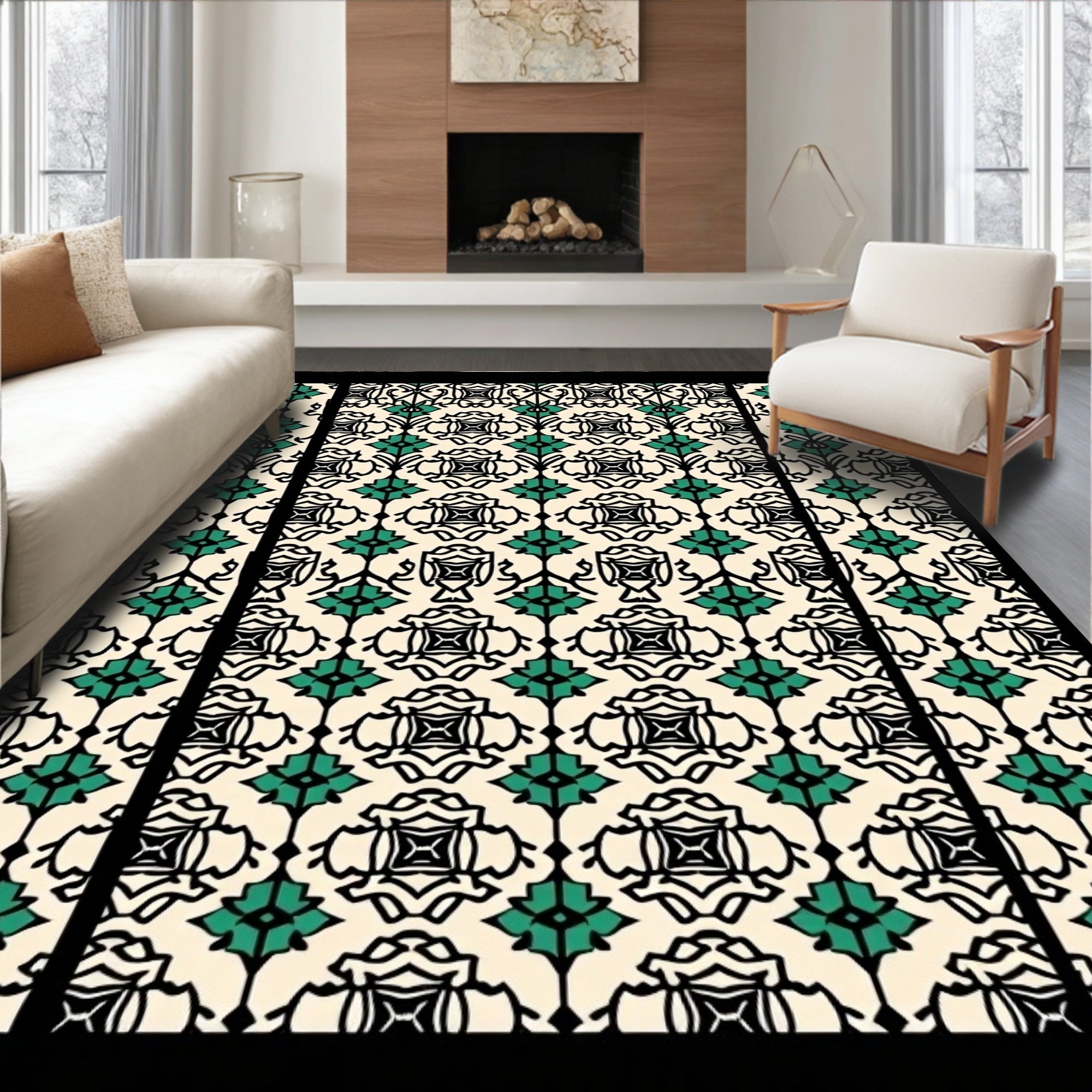 Vintage Medallion Trellis Motif Decorative (Beige)
