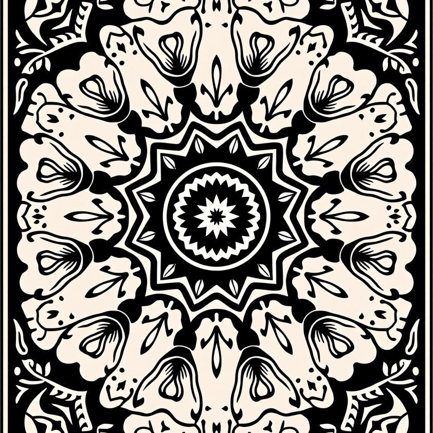 Burst Spiral Design with Intricate Radial Motifs (Black)