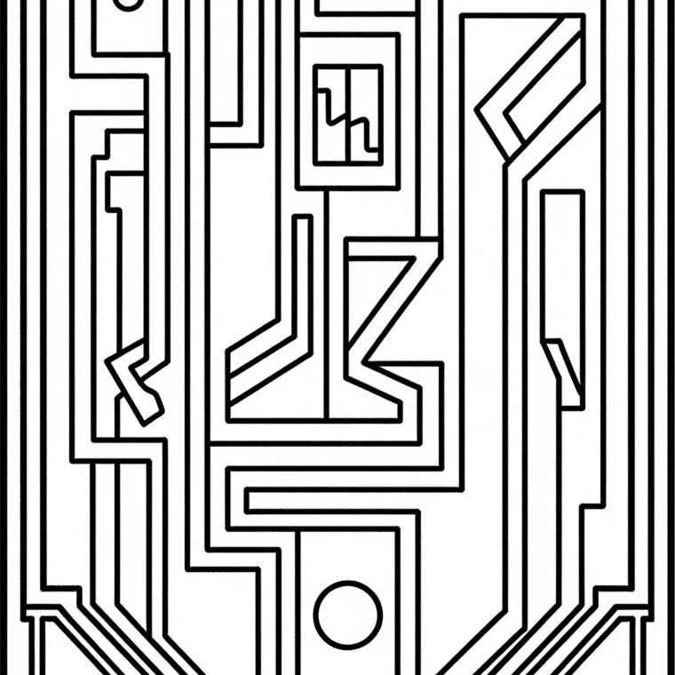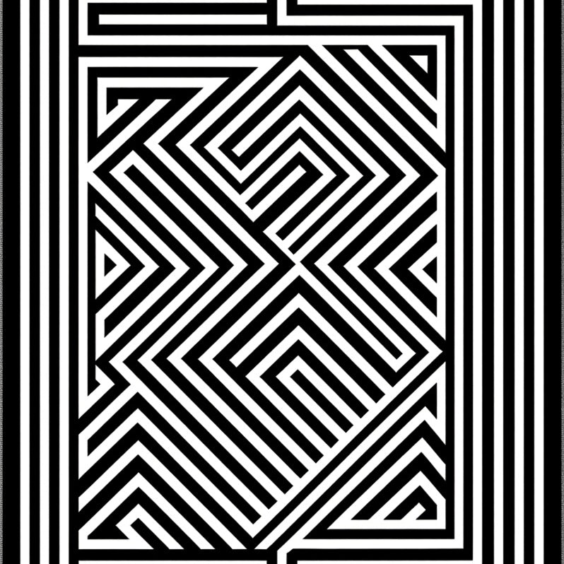 Abstract Monochrome Maze Labyrinth Zigzag Lattice Art (Black)