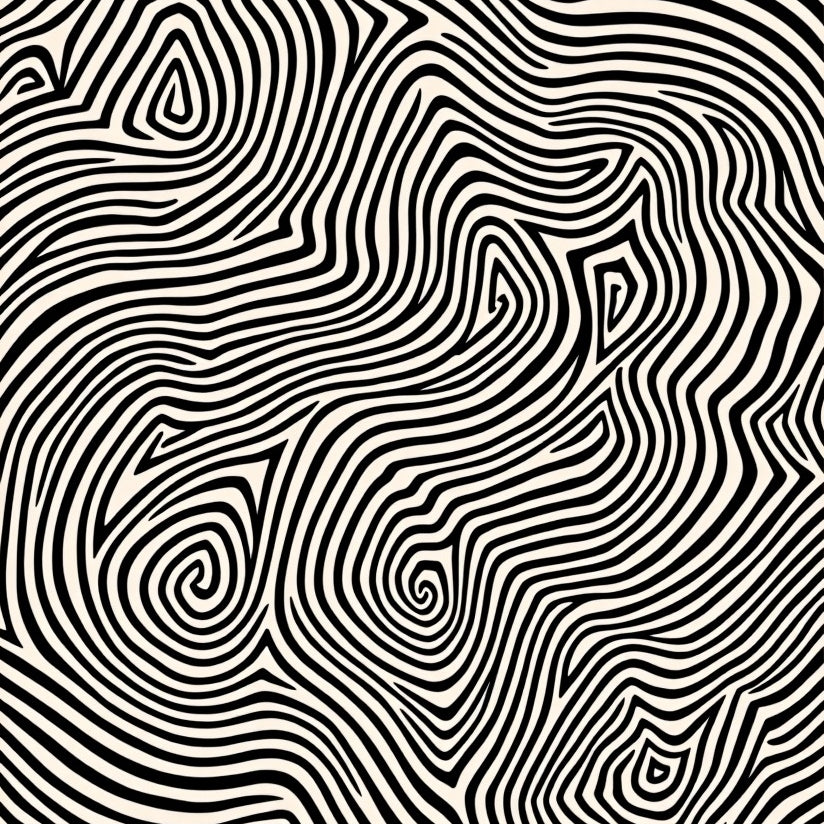 Wavy Ripple Hypnotic Swirl Dynamic Psychedelic Art (Black)