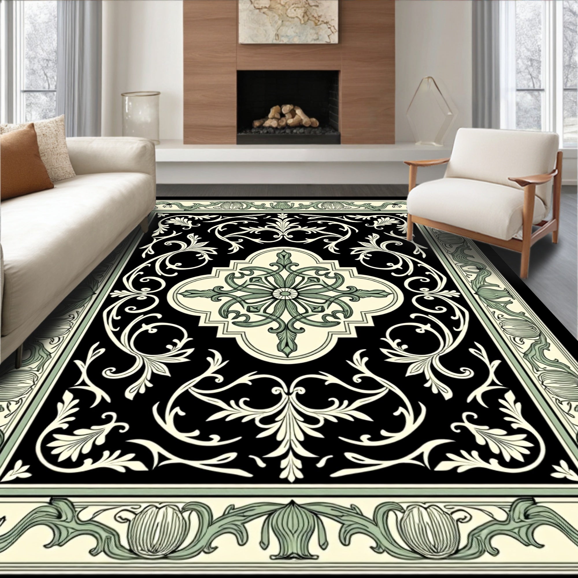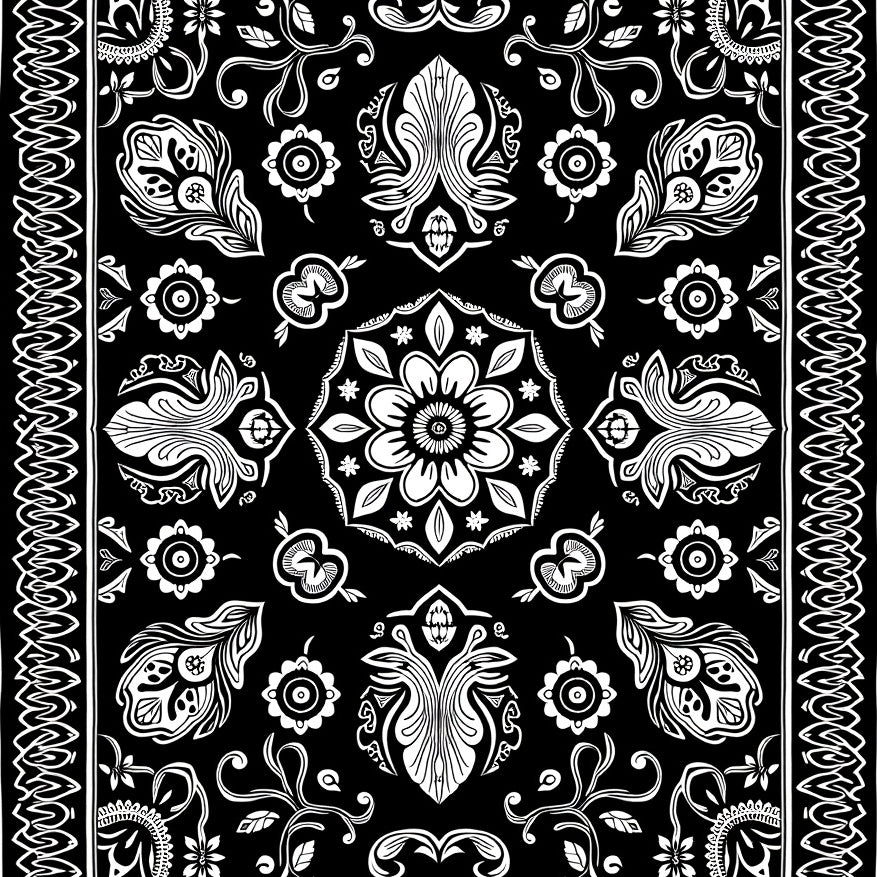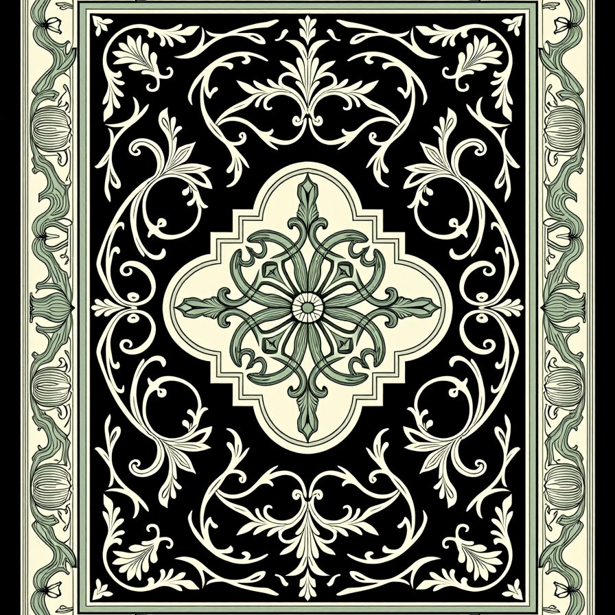 Vintage Medallion Hallway with Ornate Scrollwork (Black)