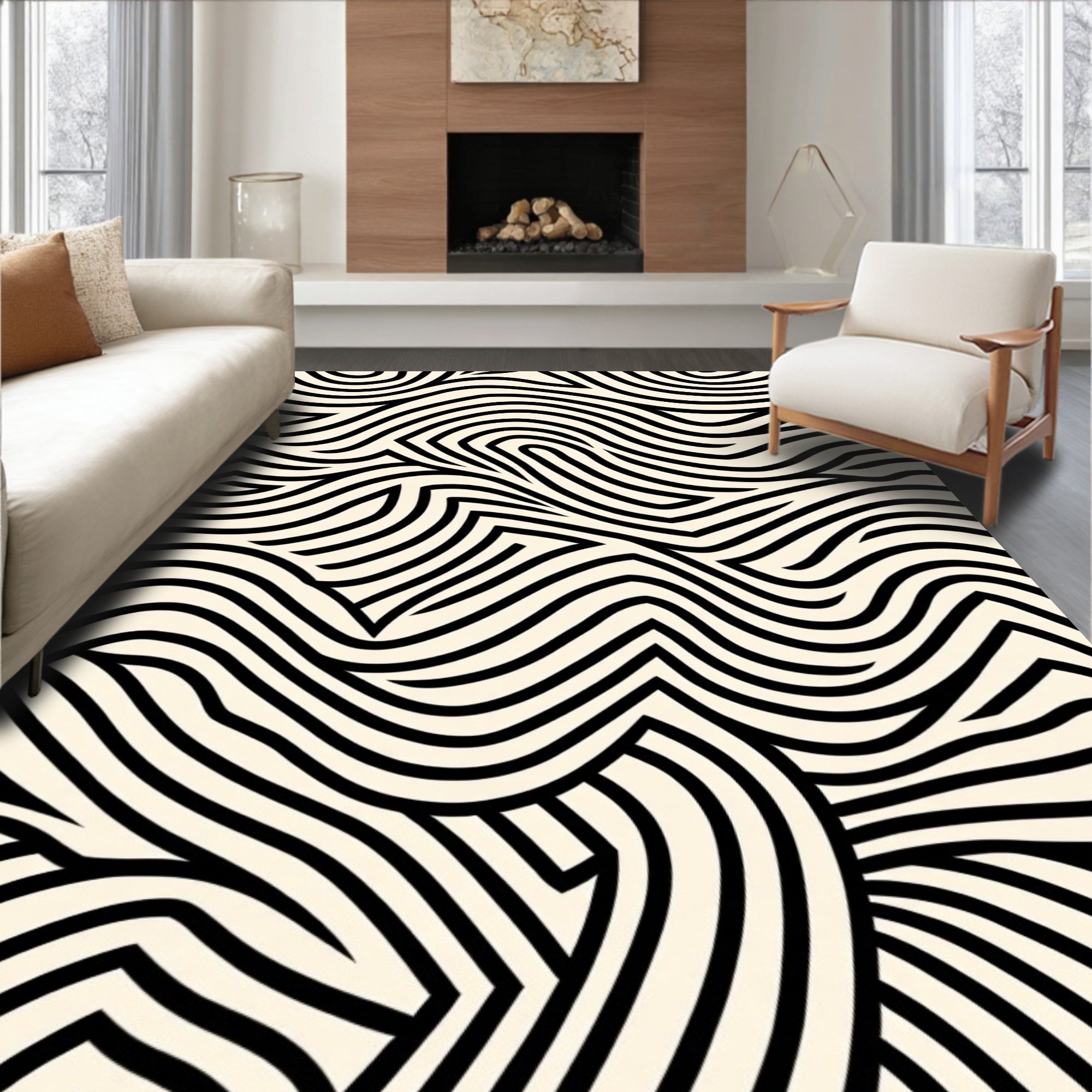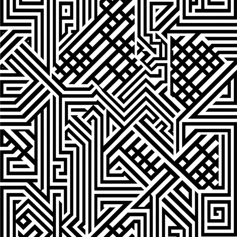 Monochrome Interlocking Lines with Bold Contrast and Modern Abstract Motifs (Black)