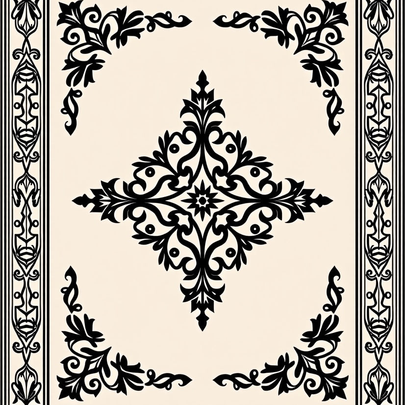 Vintage Medallion Damask Flourish Ornate Classic Elegance (Black)
