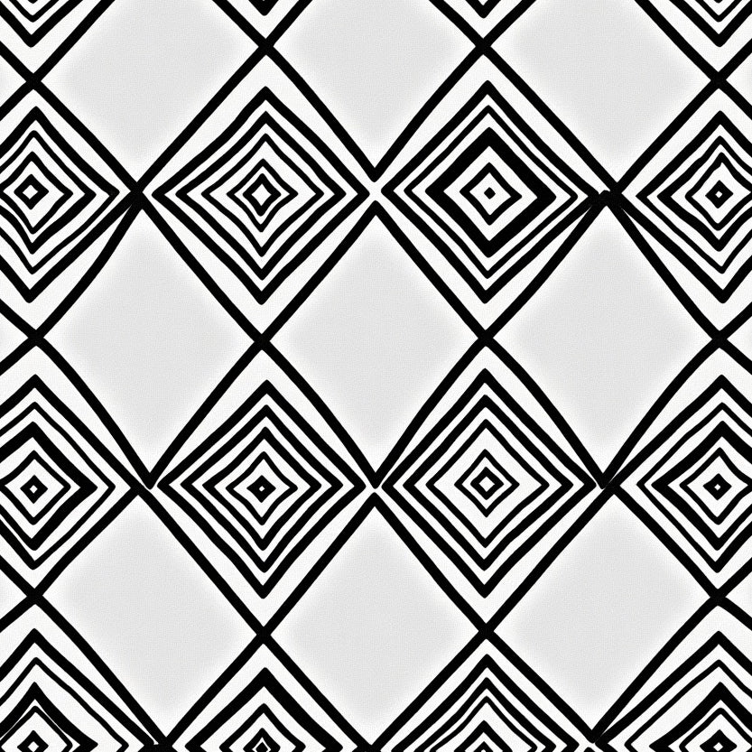 Retro Wave Interlocking Grid with Art Fan Bursts and Contrasts (Black)