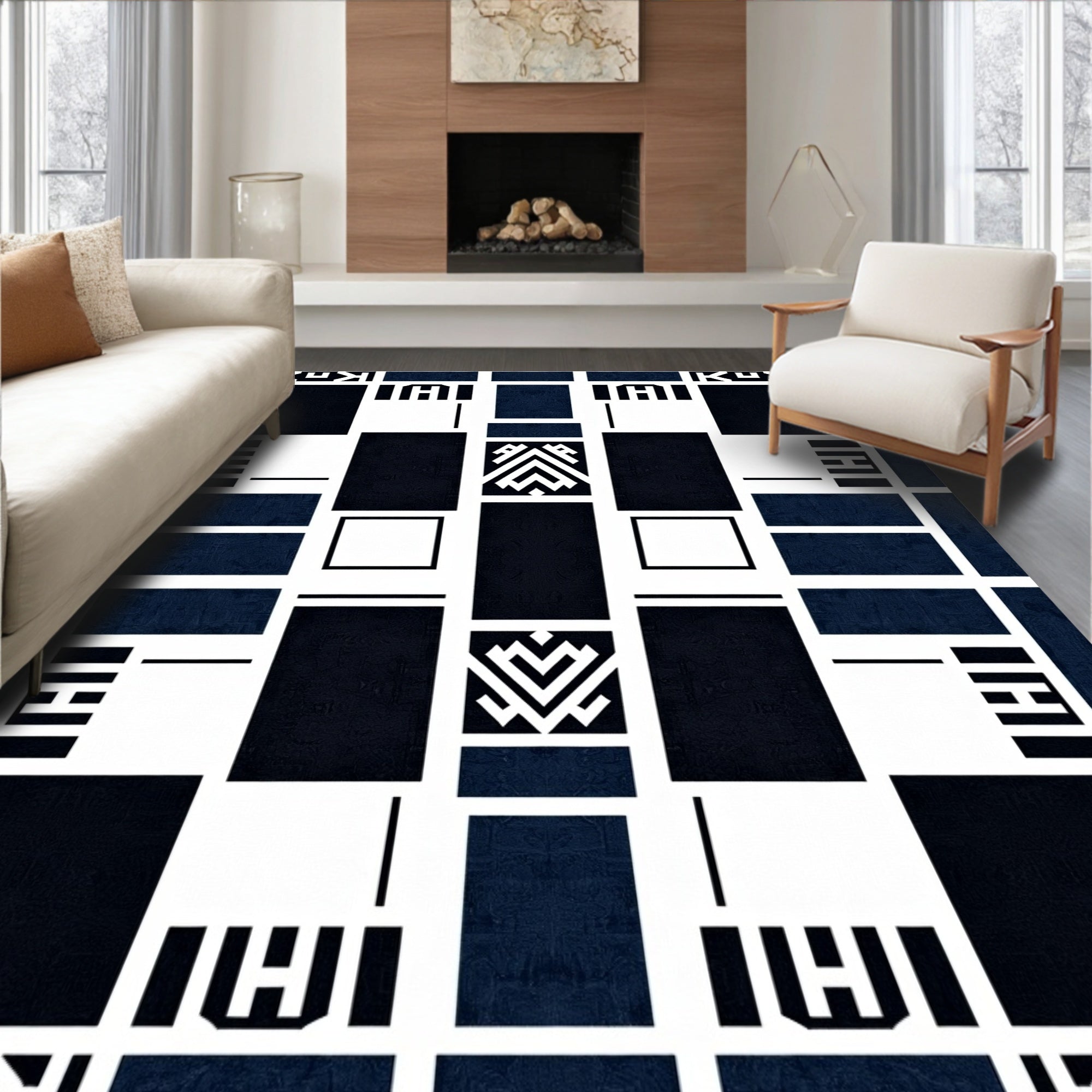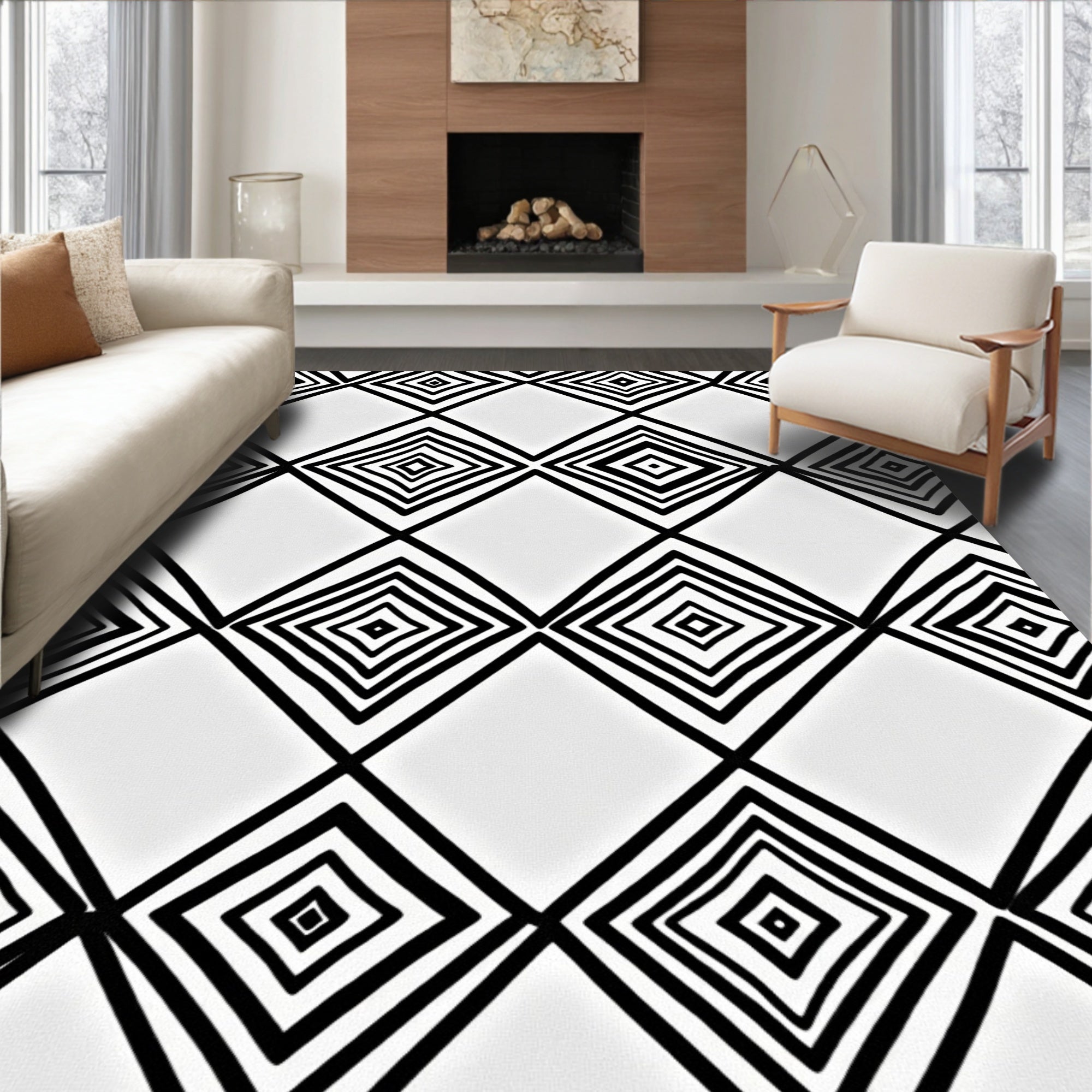 Classic Grid Floor Covering with Modern Twist (Black)