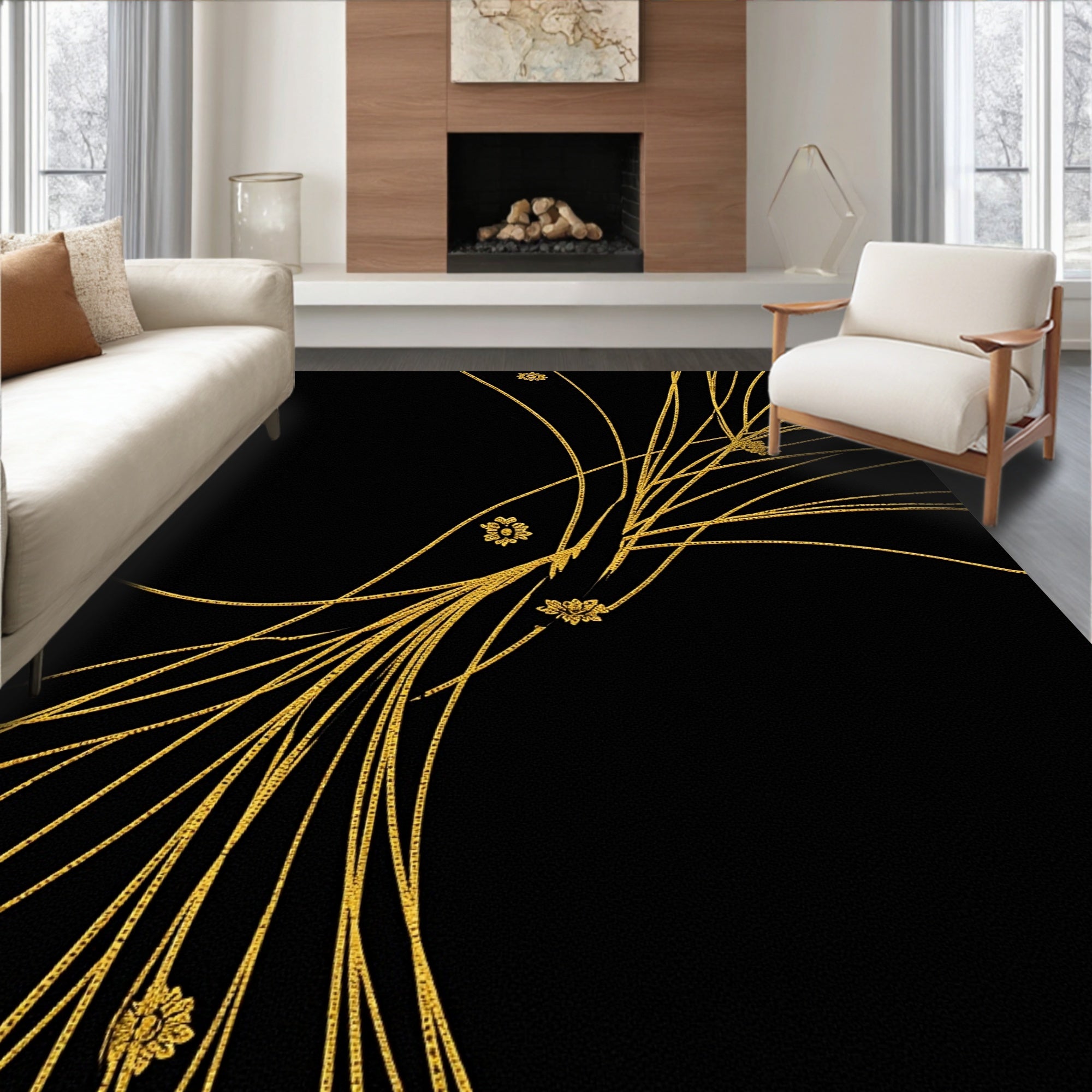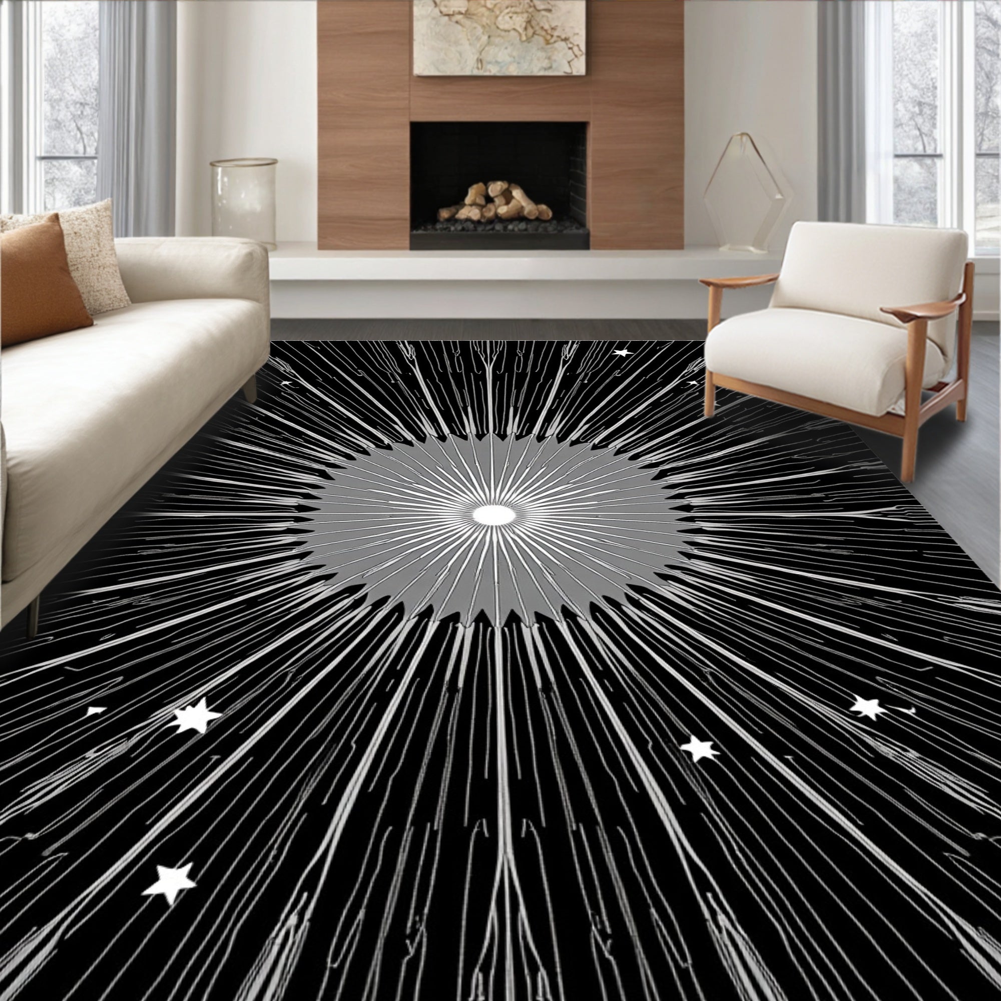 Celestial Starburst Modern Art with Twinkling Motif Accents (Black)