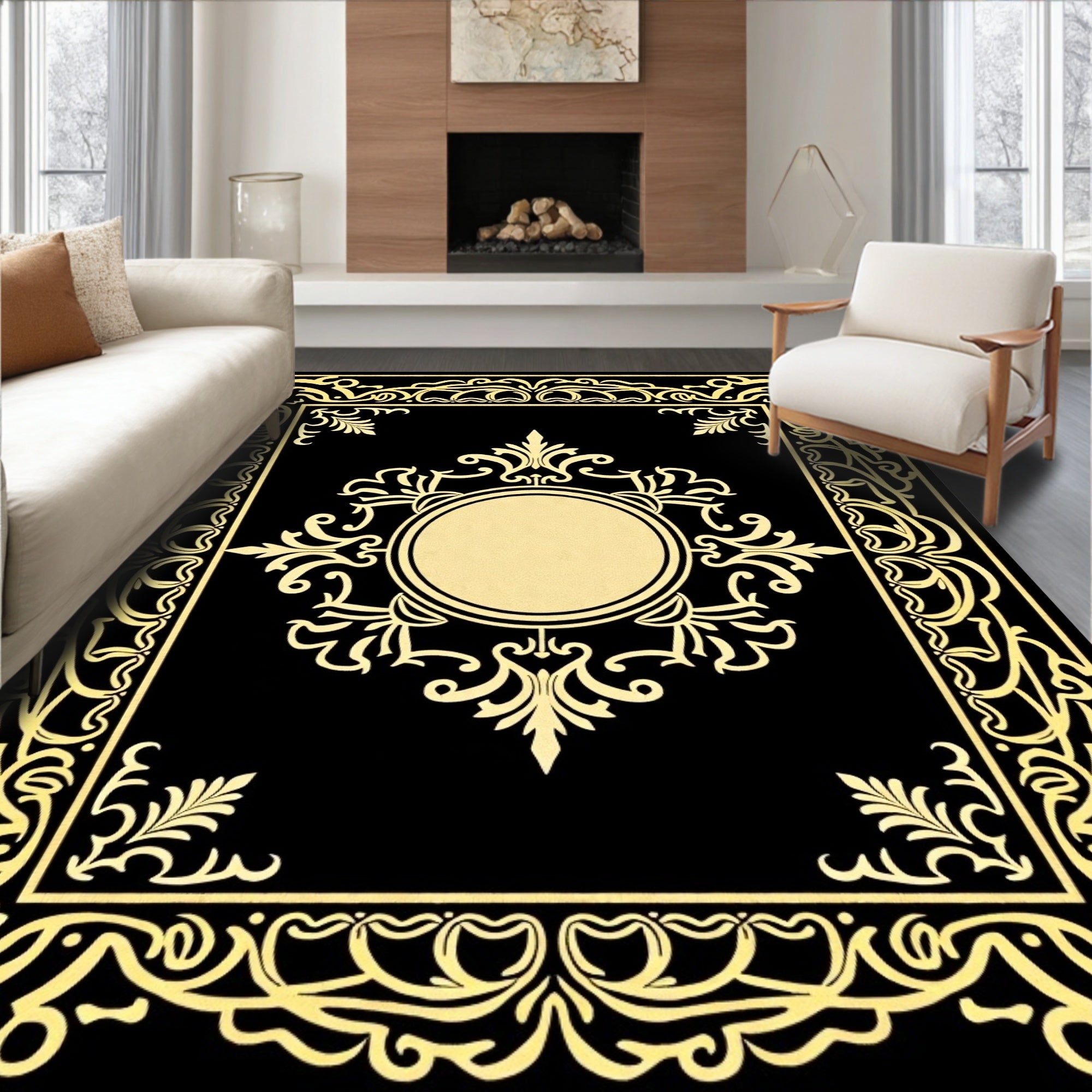 Classical Medallion Ornate Baroque Luxurious Sophisticated Chic (Black)