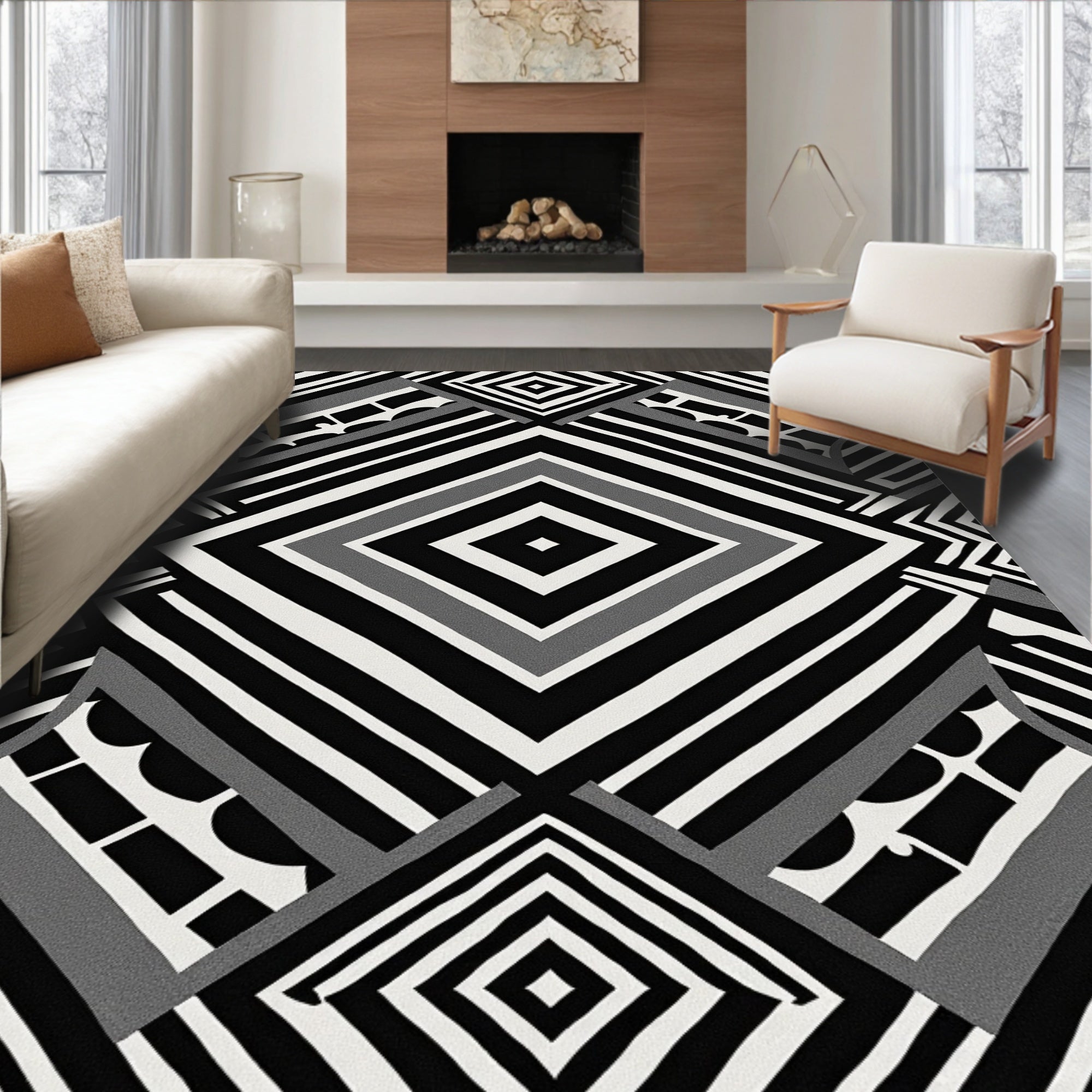 Avant Garde Optical Illusion Honeycomb Zigzag Artistic Monochromatic (Black)