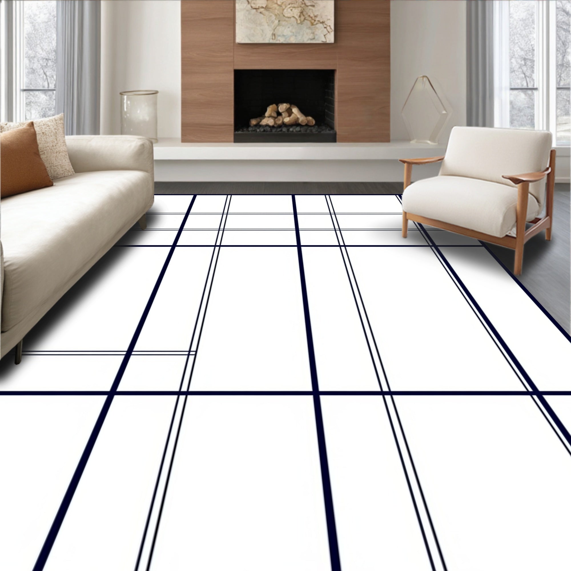 Contemporary Windowpane Layout with Clean Intersecting Stripes (Black)