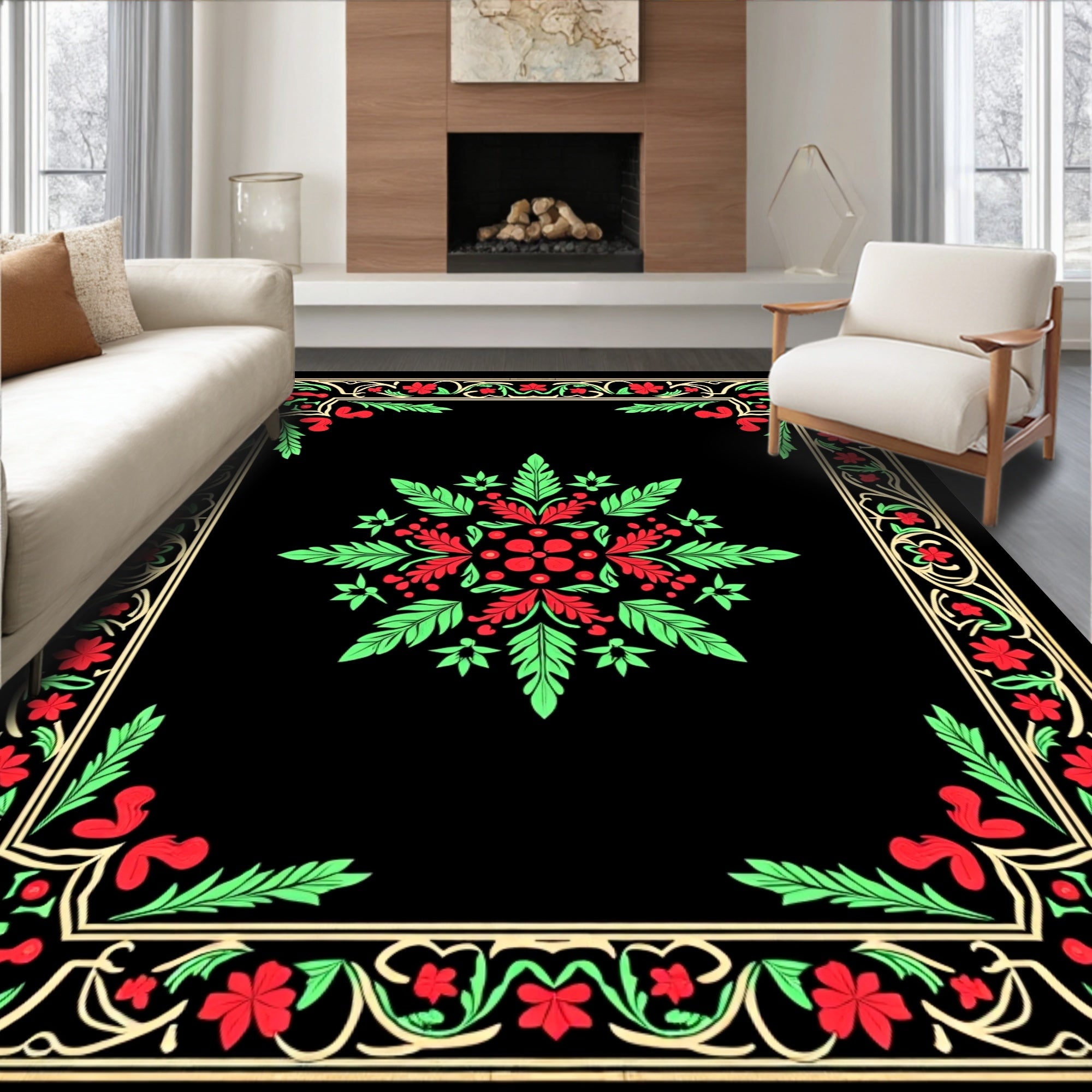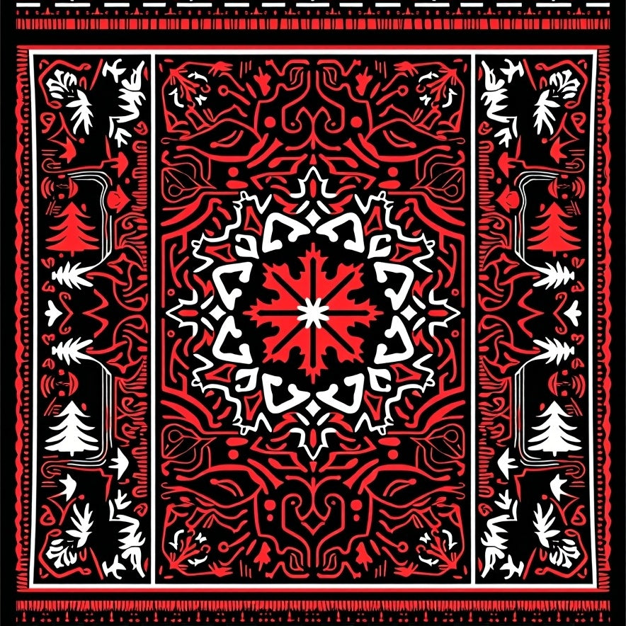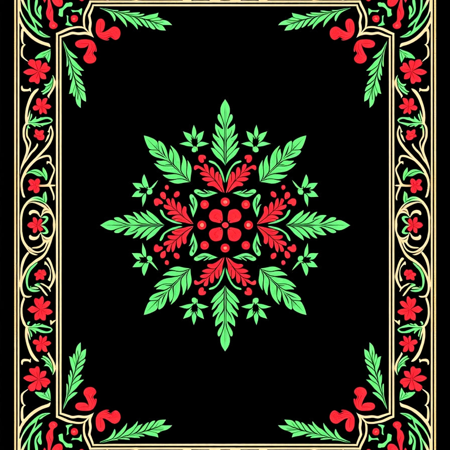 Festive Snowflake Medallion with Elegant Pine Tree Motifs(Black)