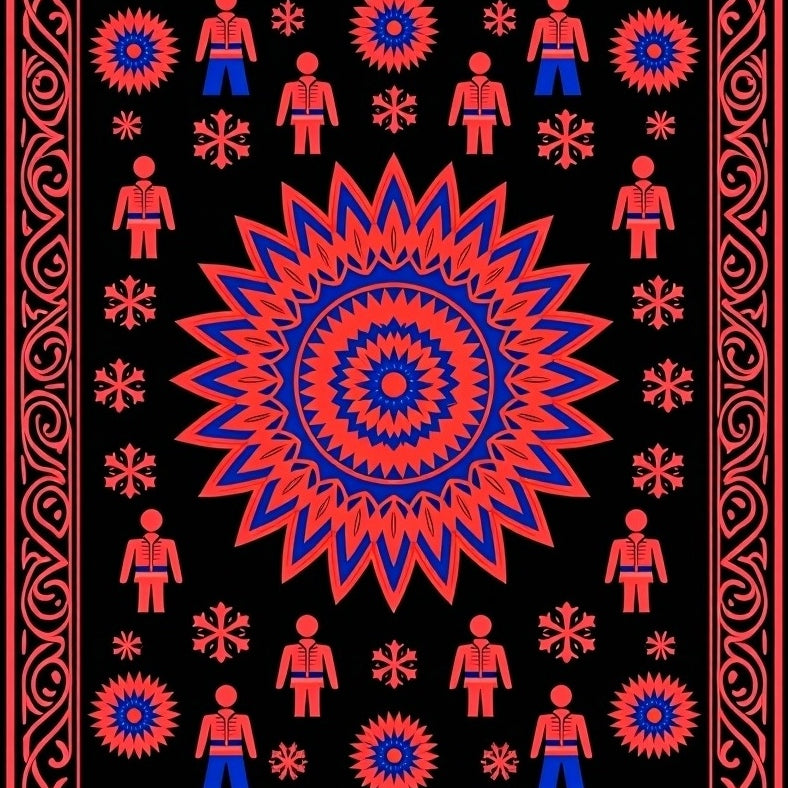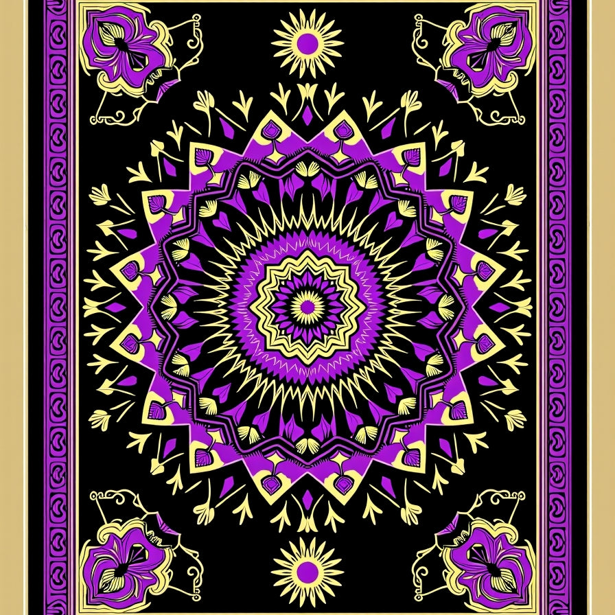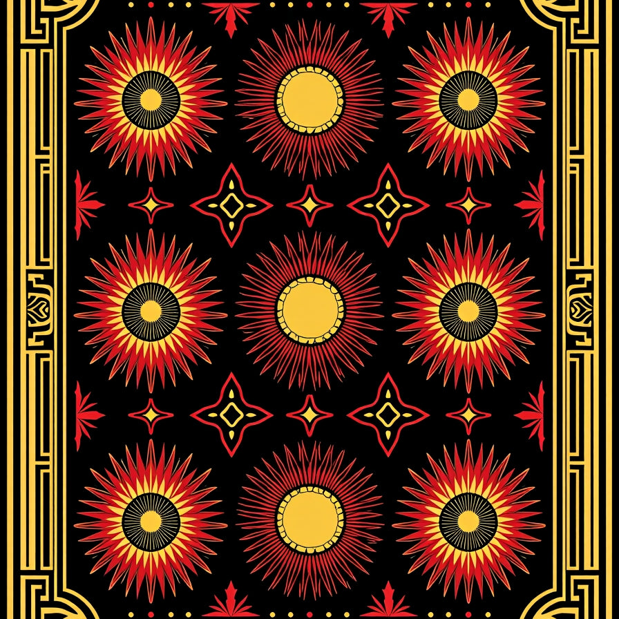 Art Starburst Mosaic with Lively Festive Symmetry and Glimmering Accents(Black)