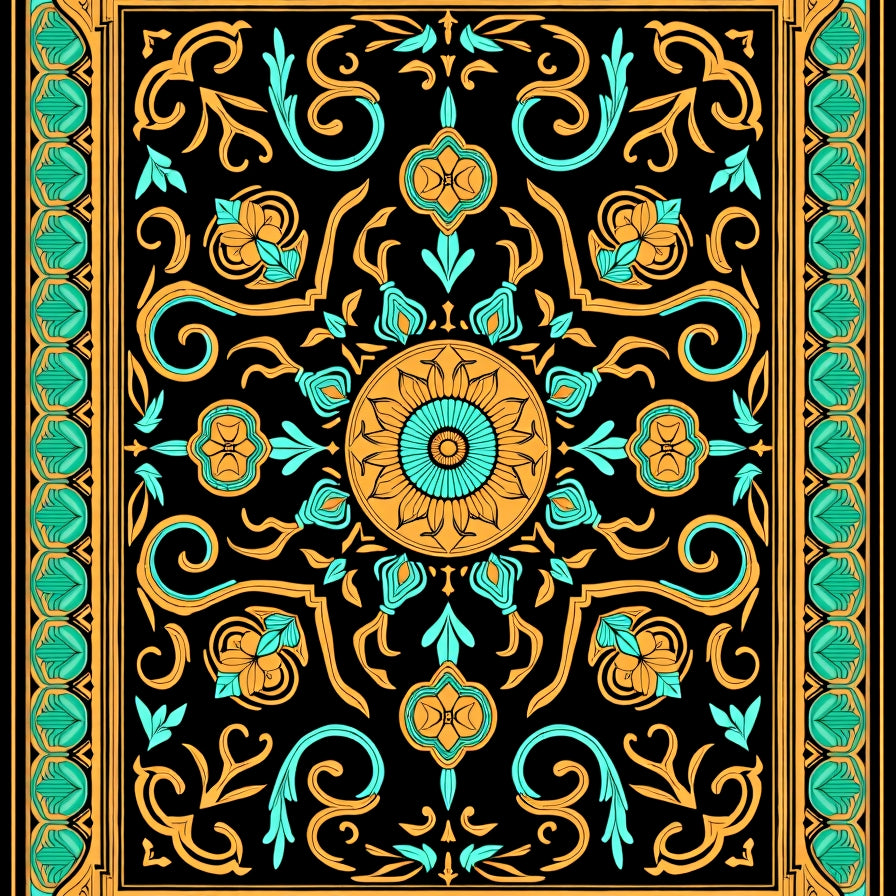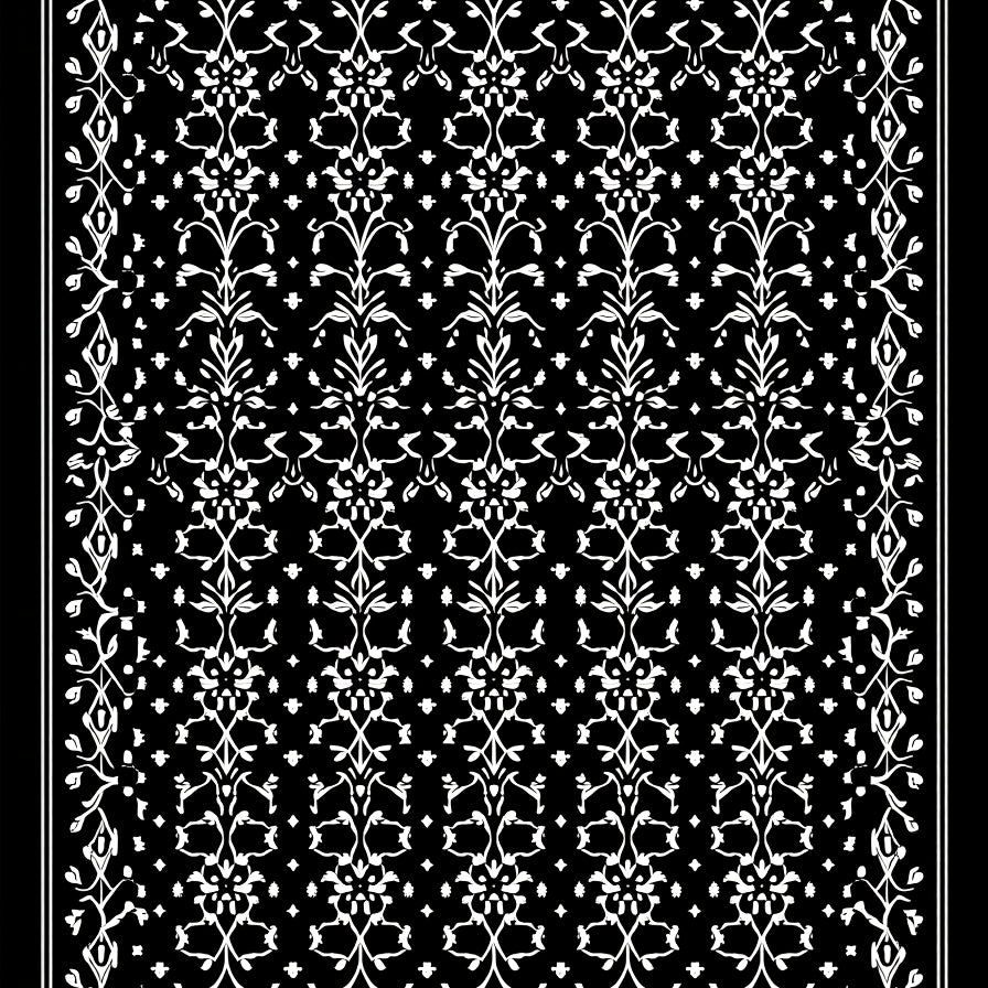 Vintage Oriental Scrollwork with Moody Floral Embellishments(Black)