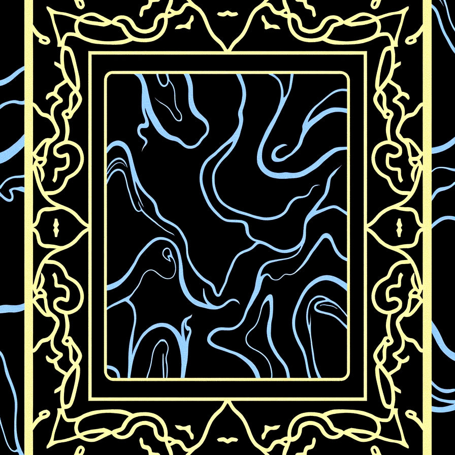 Ornate Baroque Inspired Scrollwork with Lavender and Silver Highlights(Black)