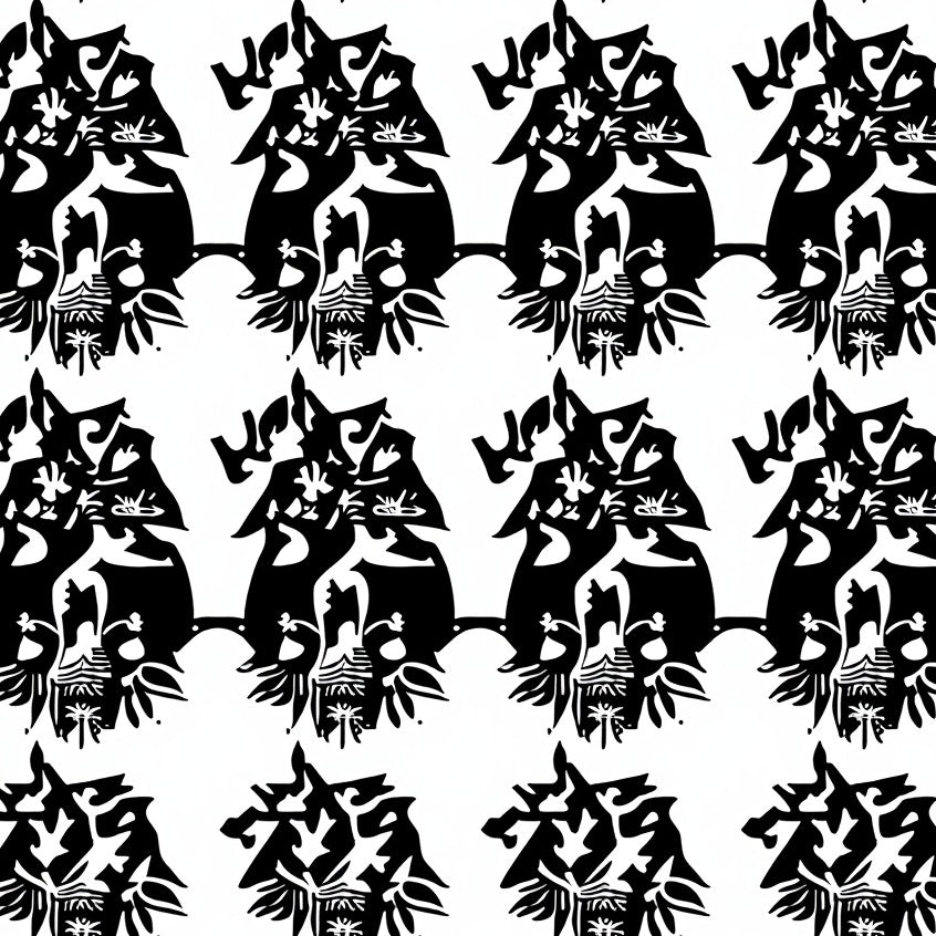 Floral Lattice with Ornate Blossom Overlays(Black)