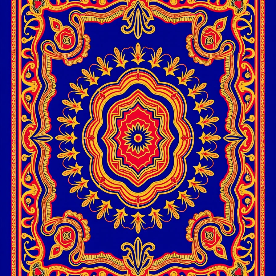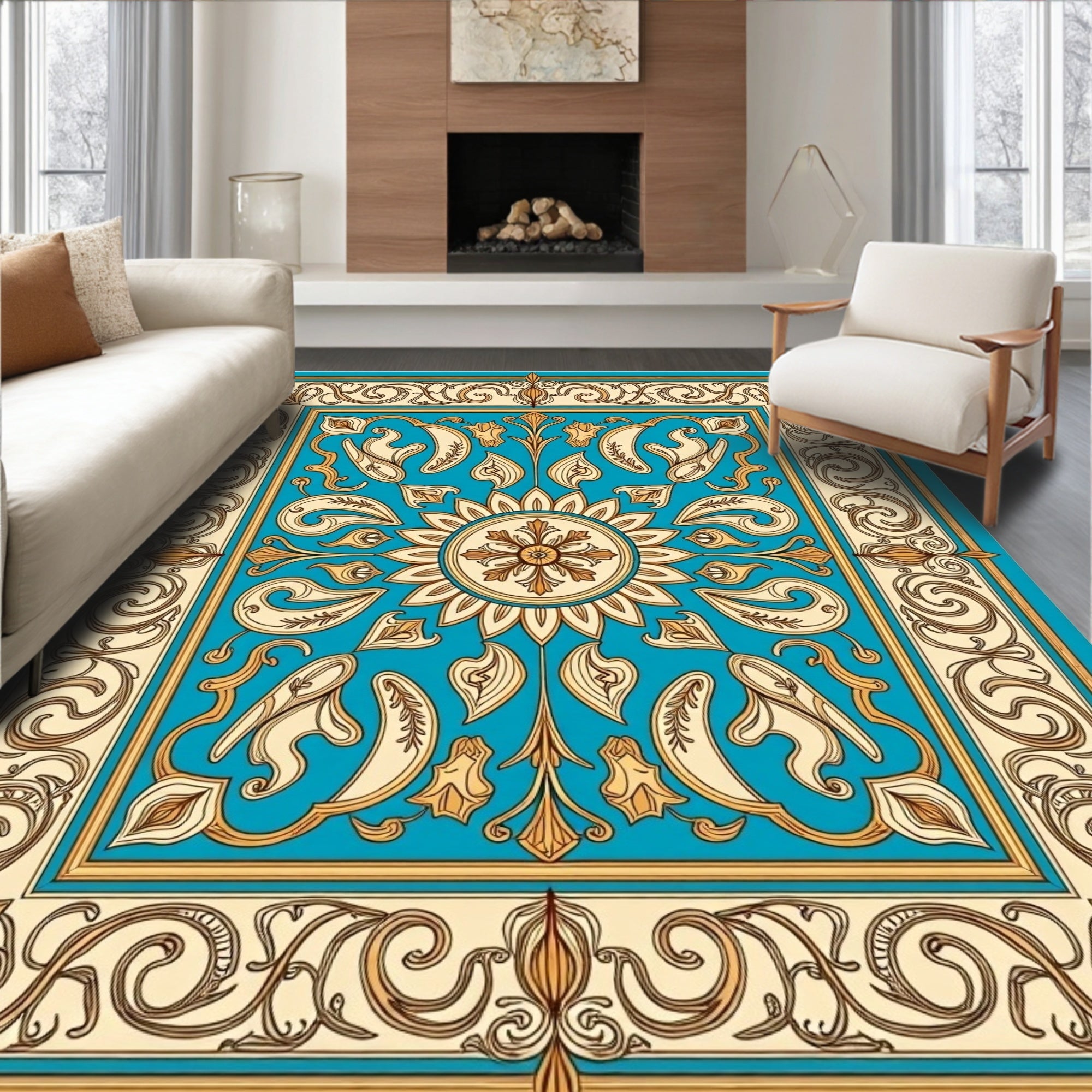 Luxurious Paisley Swirl Ornate Medallion Artisan Handwoven (Blue)