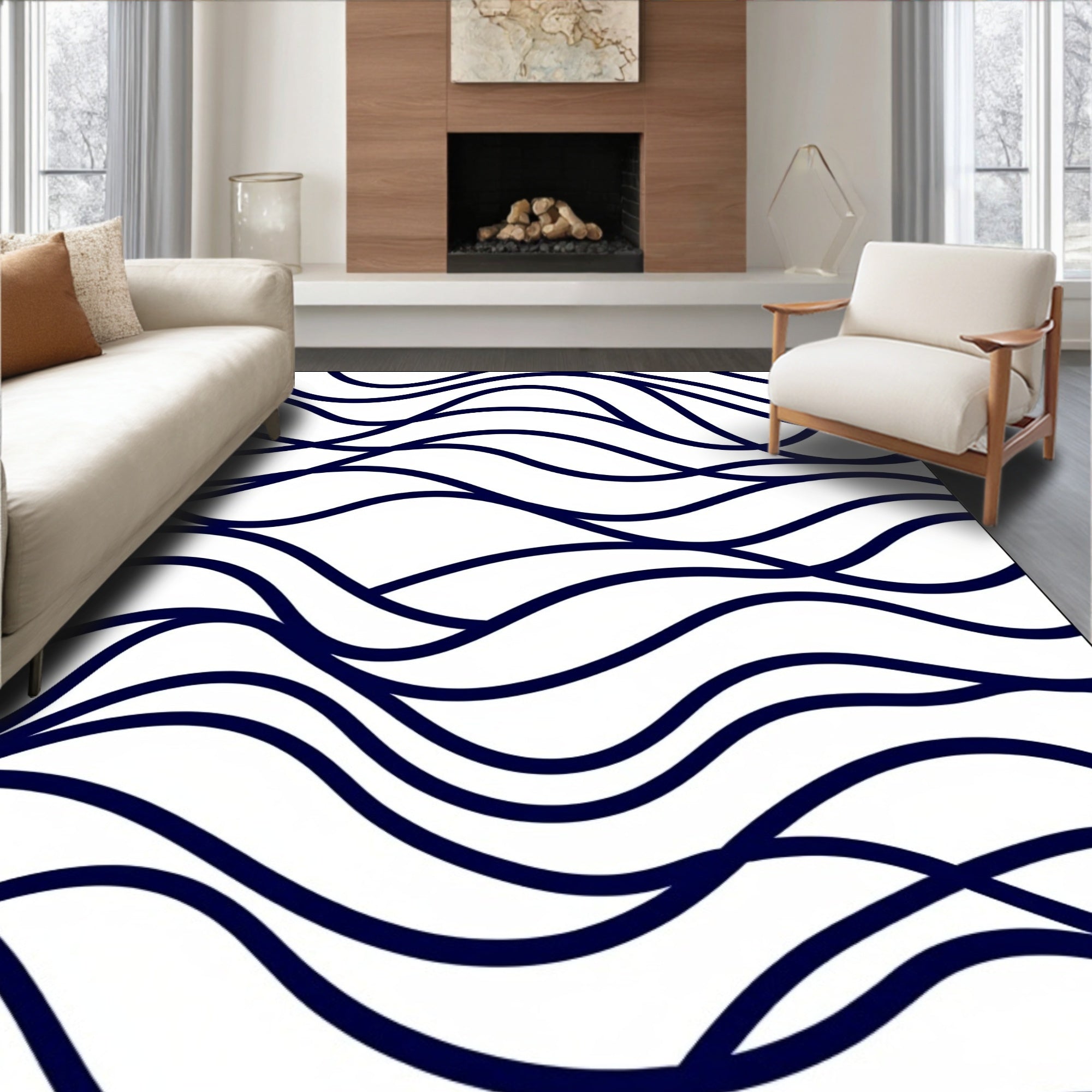 Nautical Wave Interlocking Contemporary Modern Stylish Decorative (Blue)