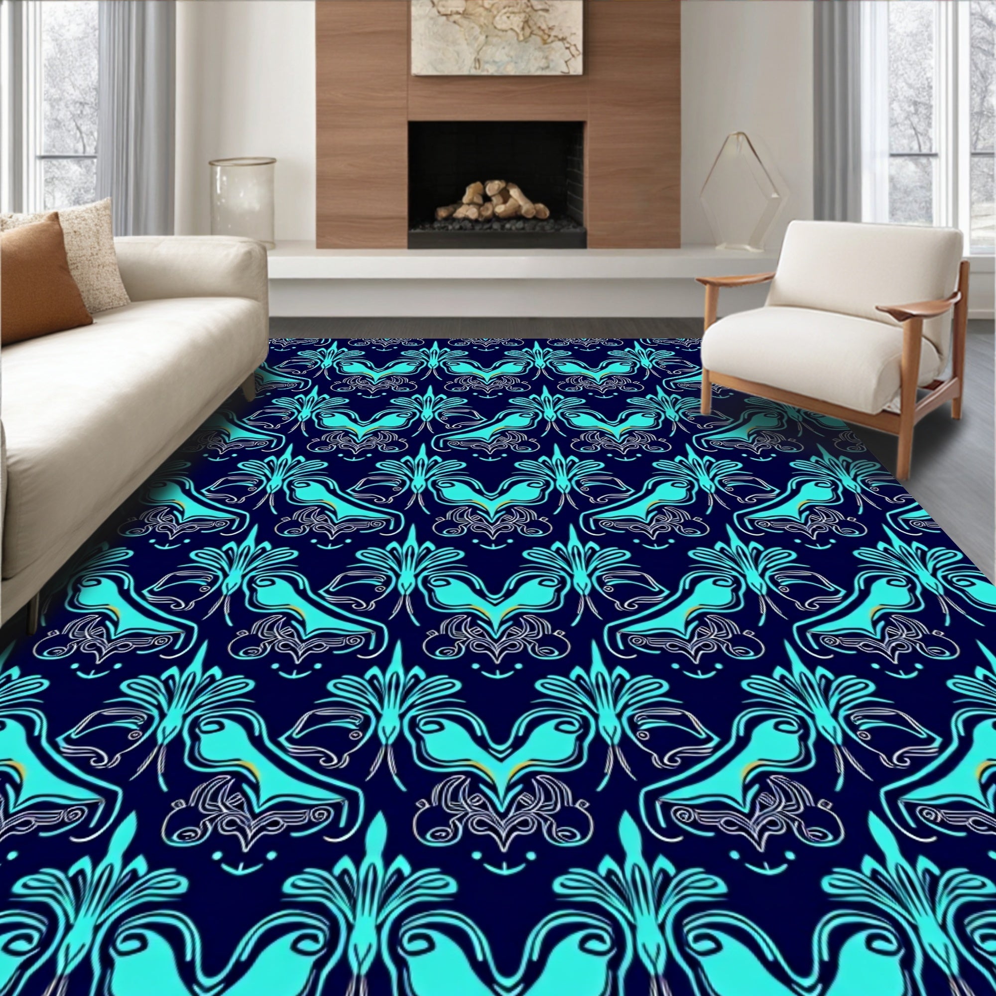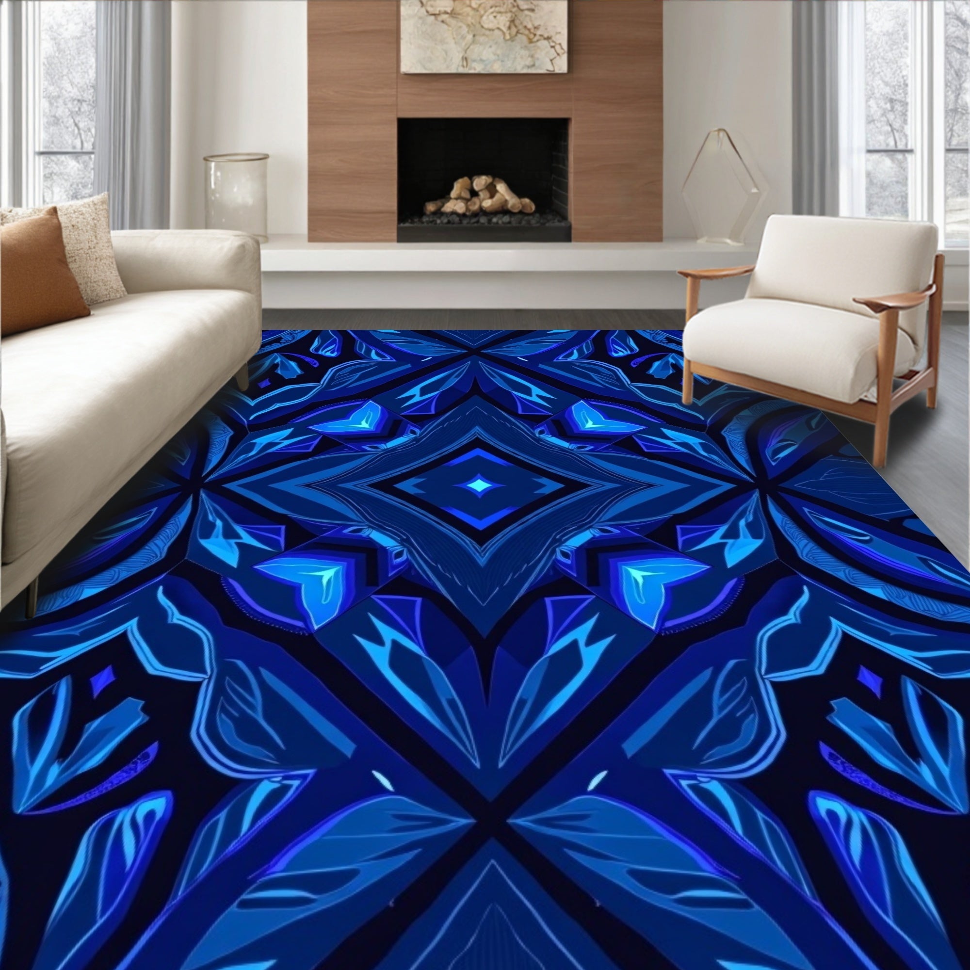 Hexagonal Honeycomb Modern Abstract Contemporary Design Floor Covering (Blue)