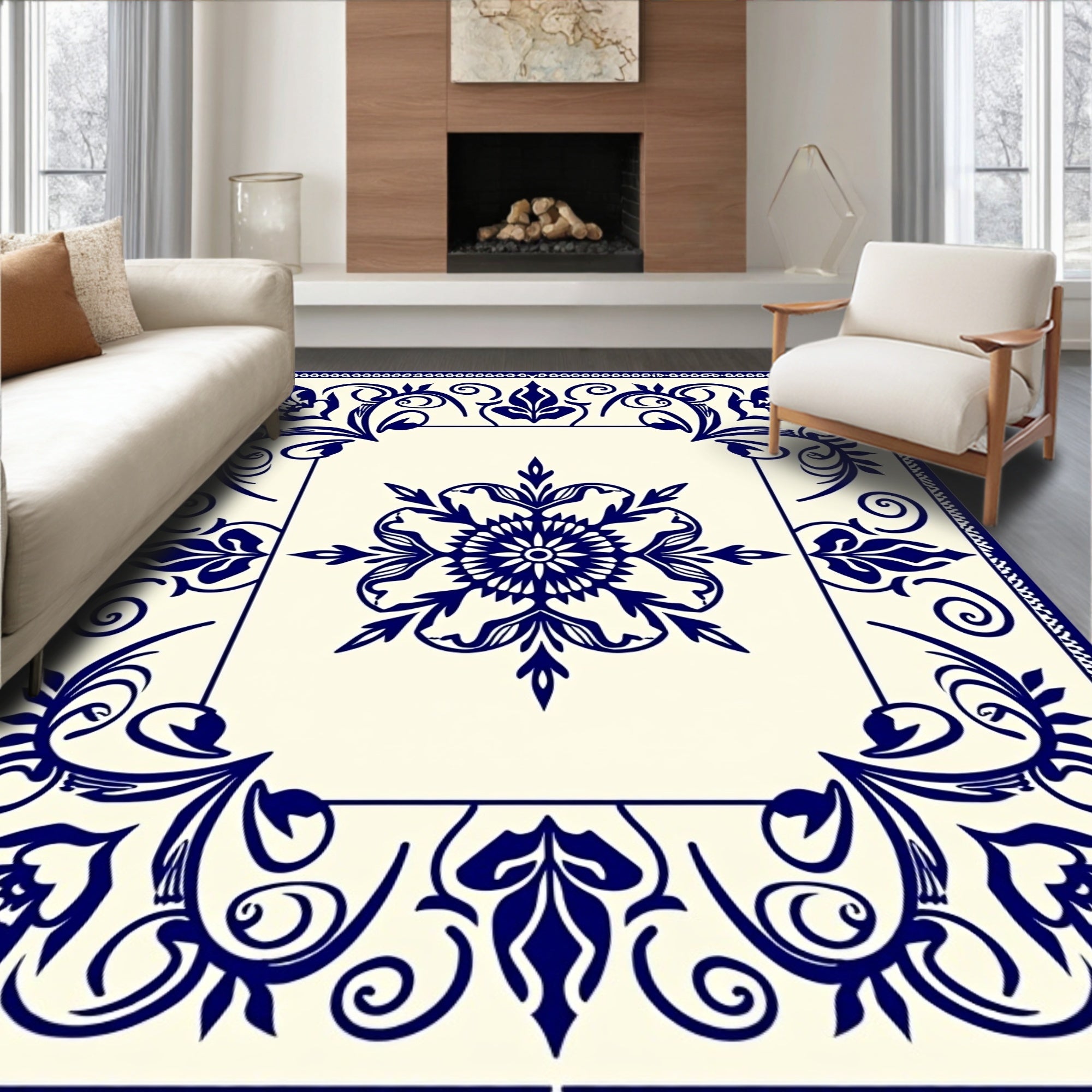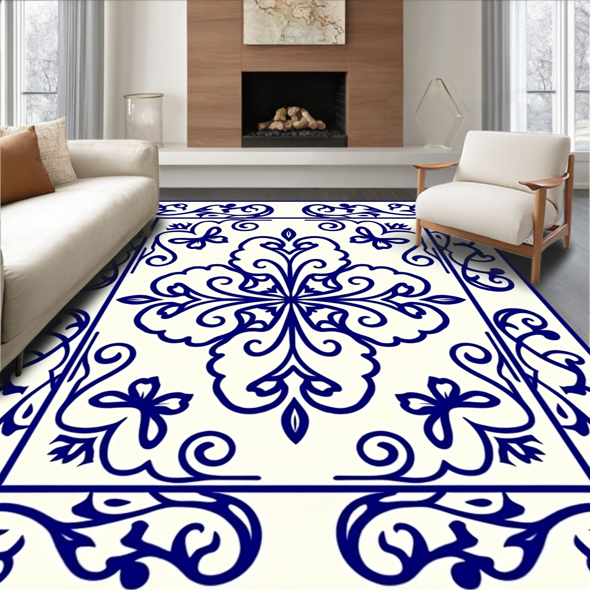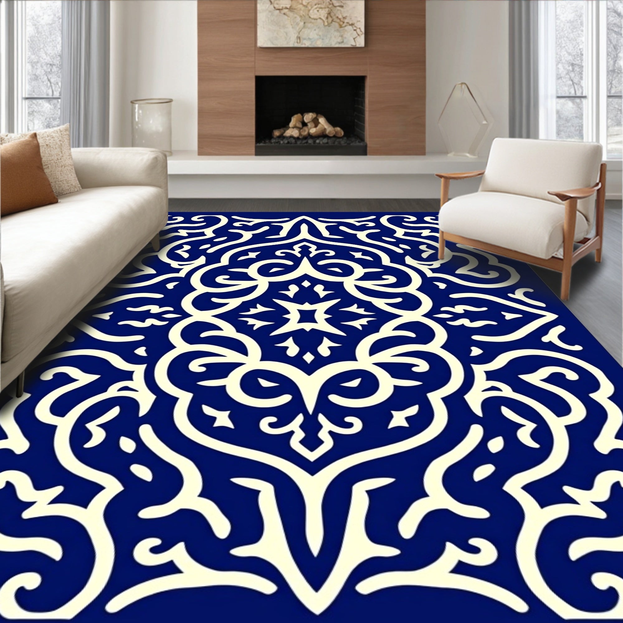 Elegant Swirl Medallion Trellis Abstract Vintage Contemporary (Blue)