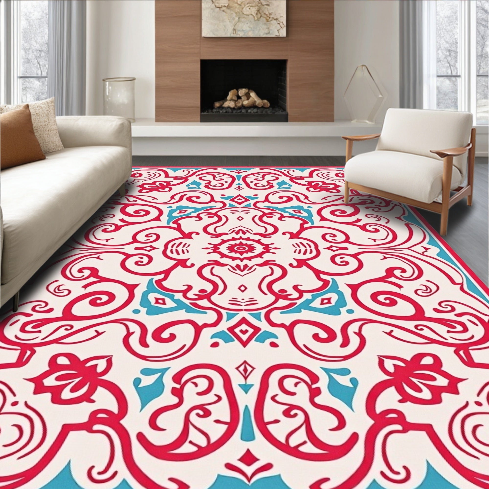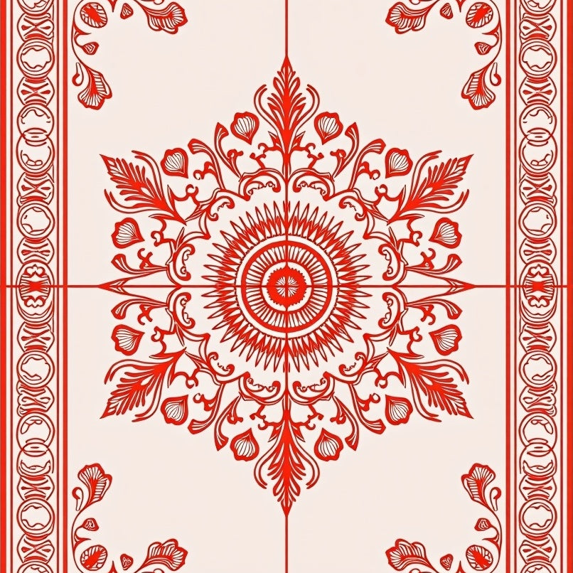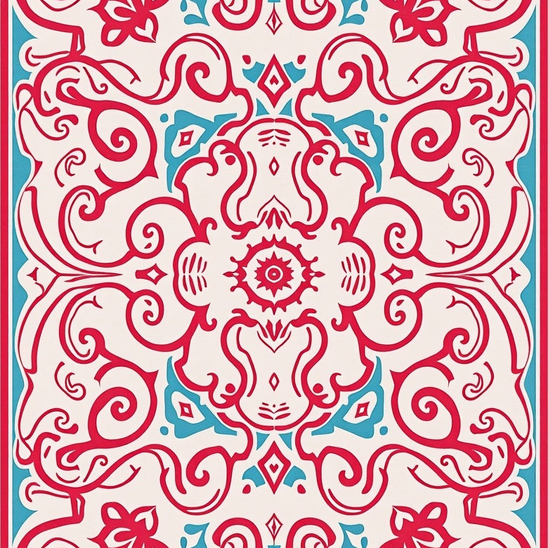 Vintage Medallion Heritage Boho Floral Ornate Symmetrical Décor(Red)