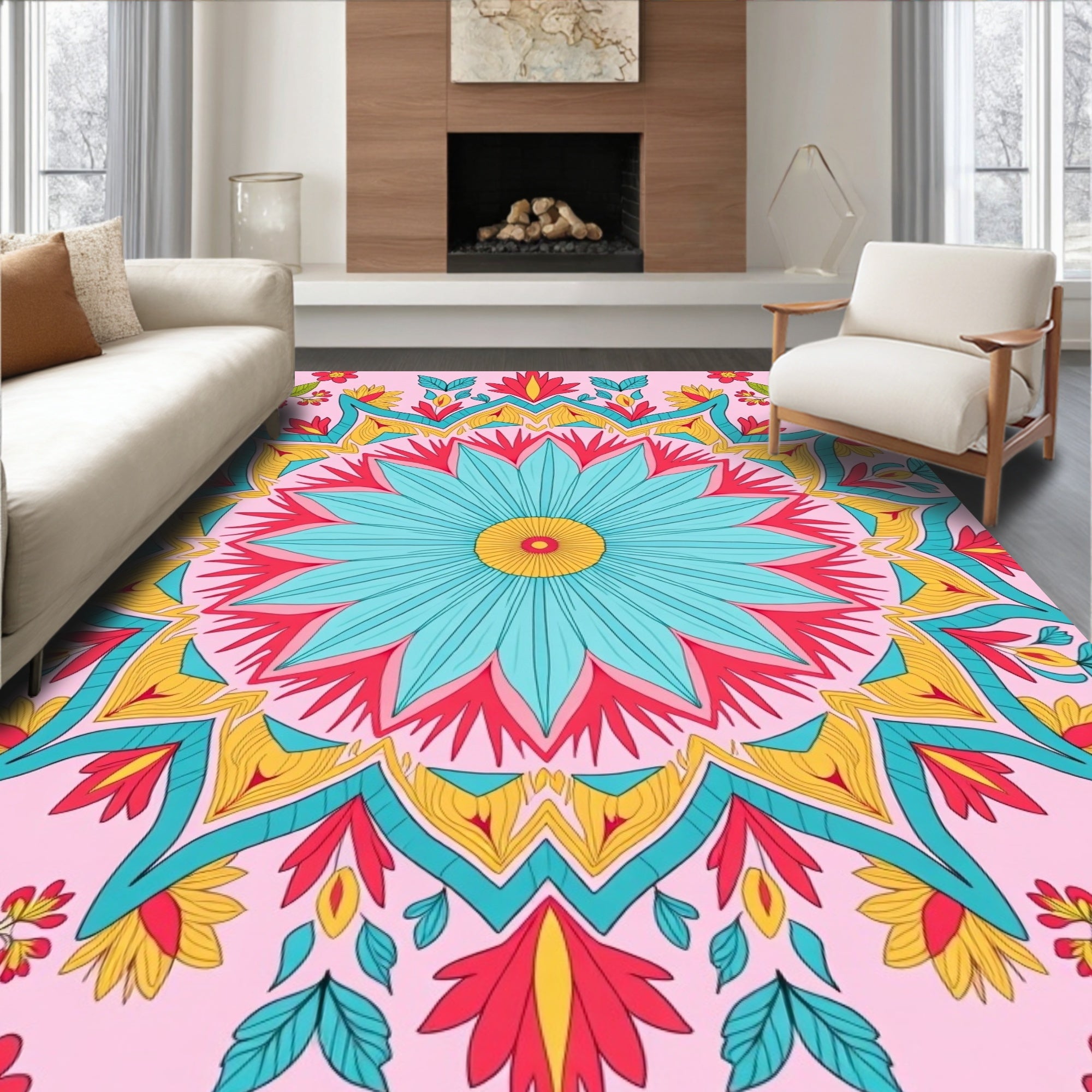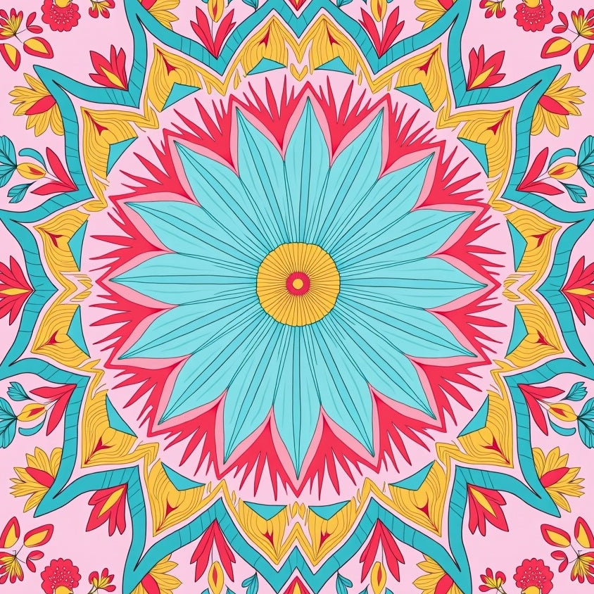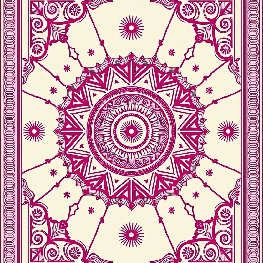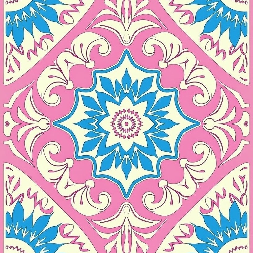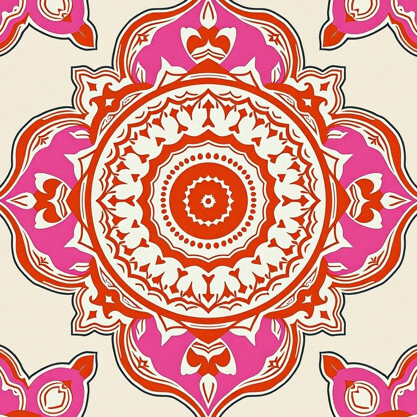 Vintage Inspired Floral Medallion with Curvilinear Boho Motifs(Pink)