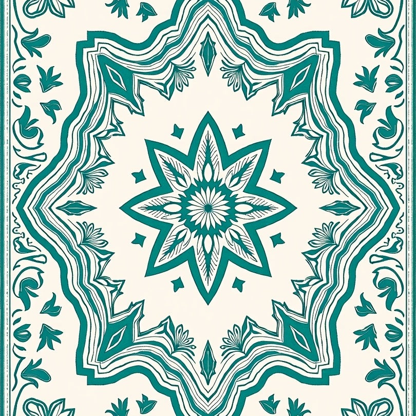 Intricate Boho Chic Symmetrical Motif Contemporary(Green)
