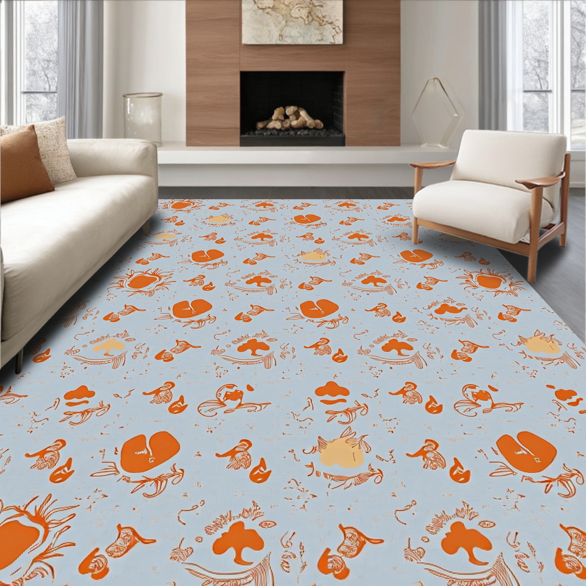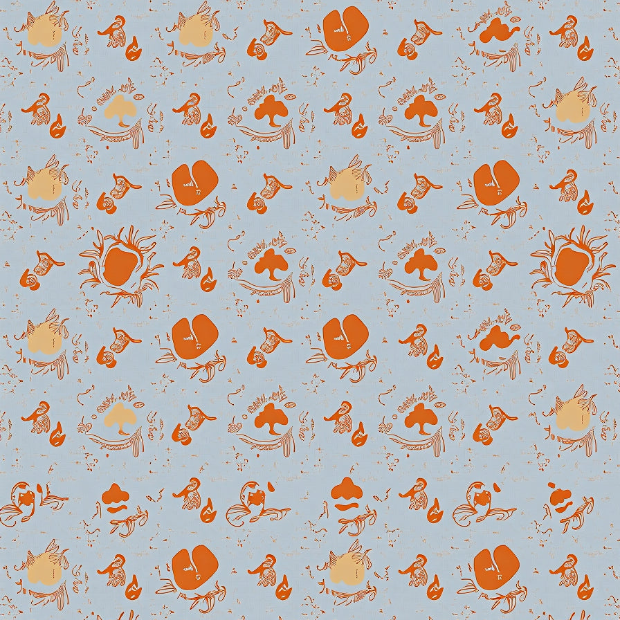 Modern Boho Scrollwork with Scattered Ornamental Blotches(Blue)