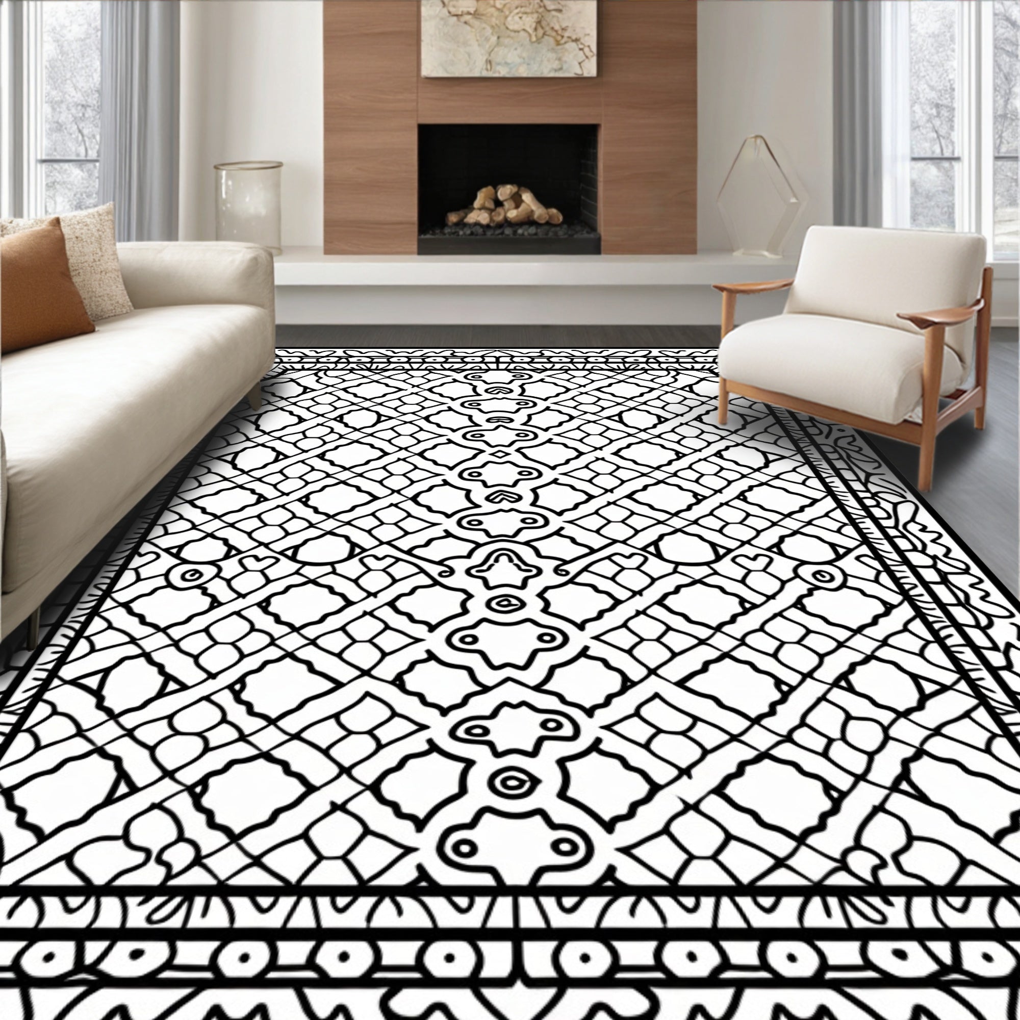 Inspired Lattice Boho Style Non Shedding Floor Covering(Black)