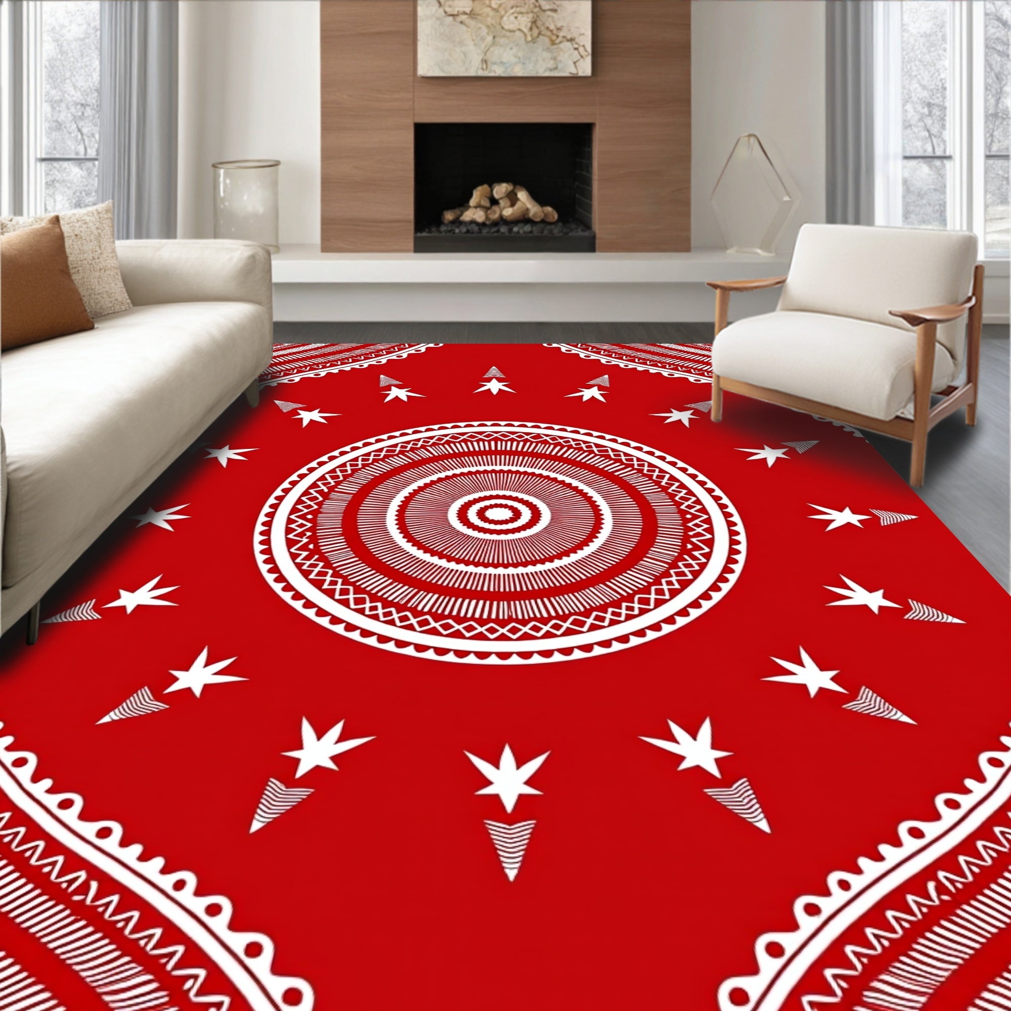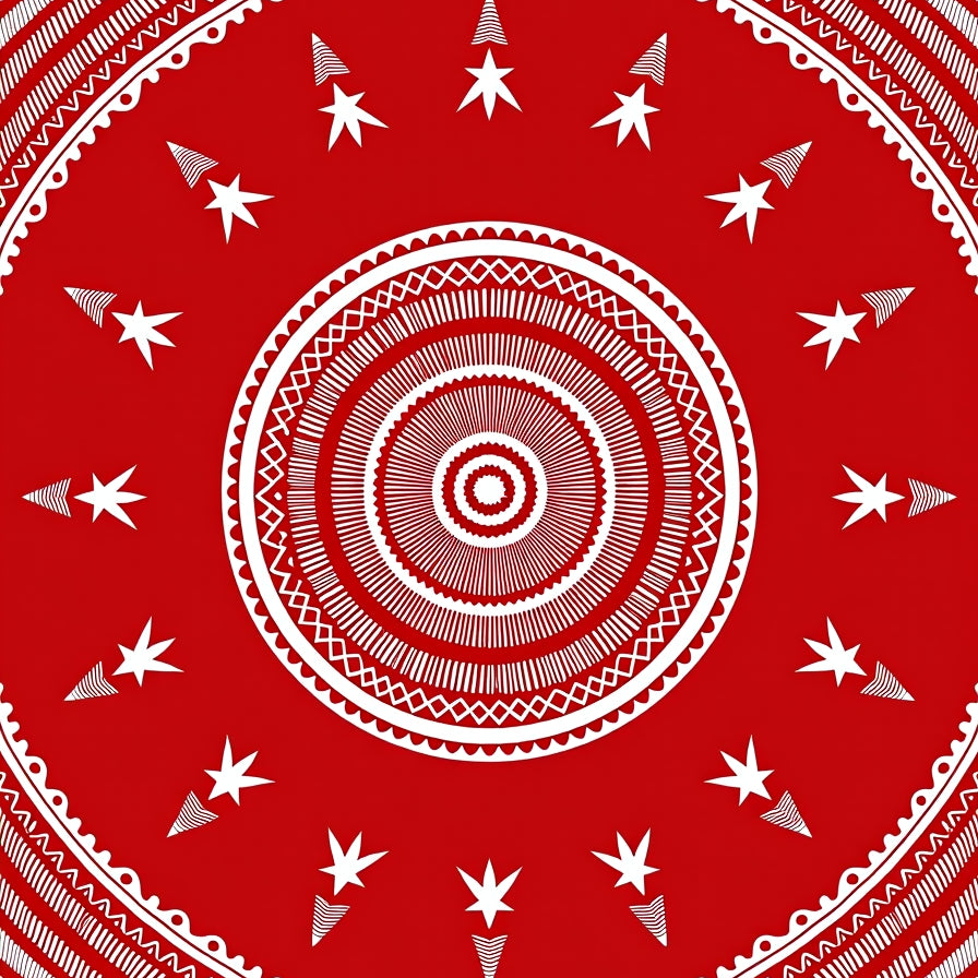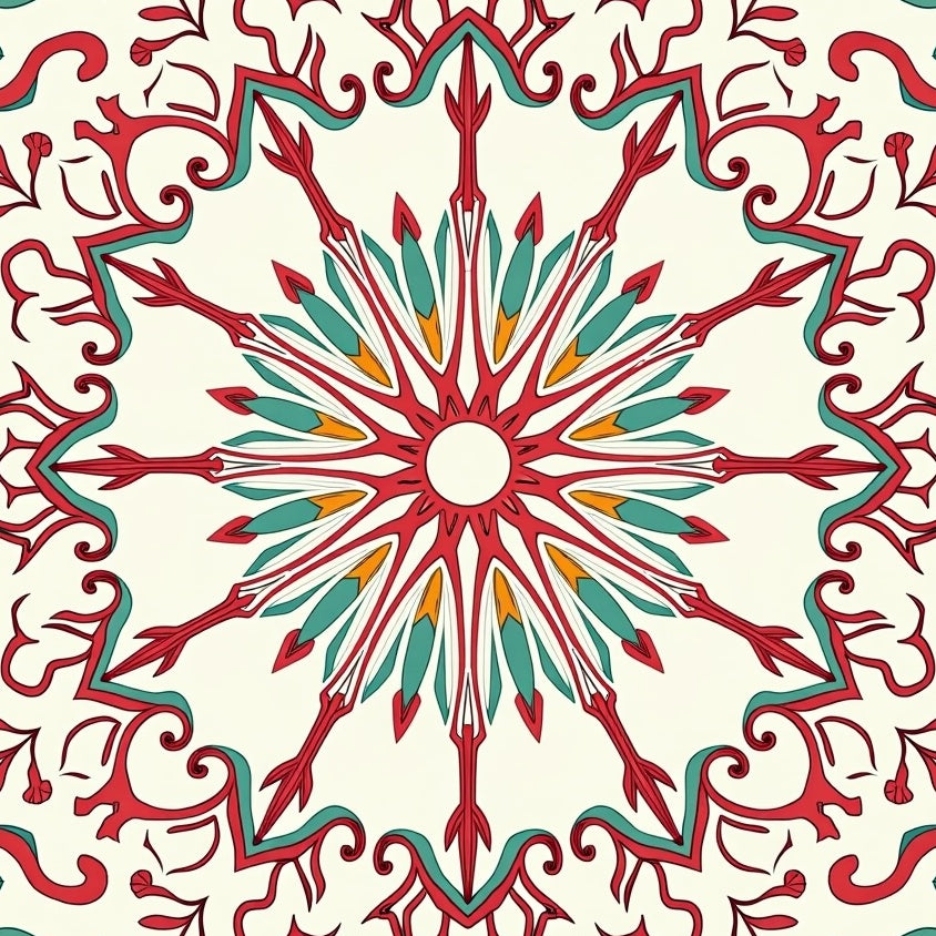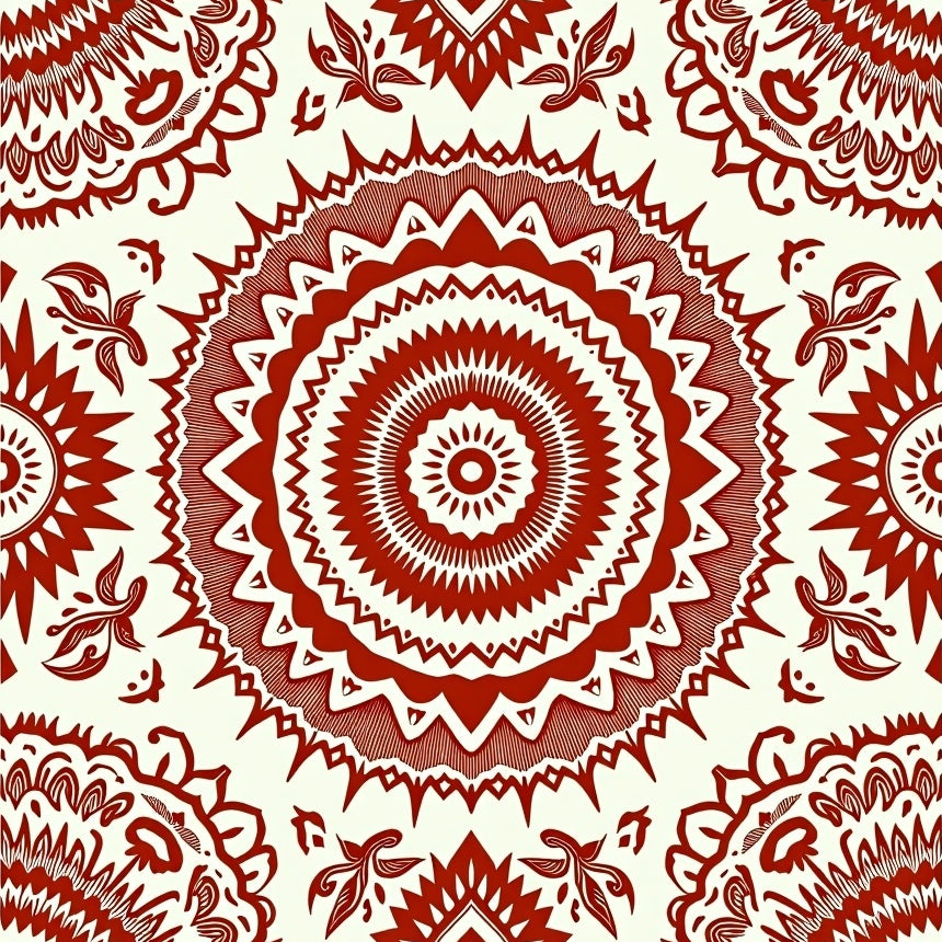 Boho Sunburst Design with Twisting Leaf Motifs(Red)