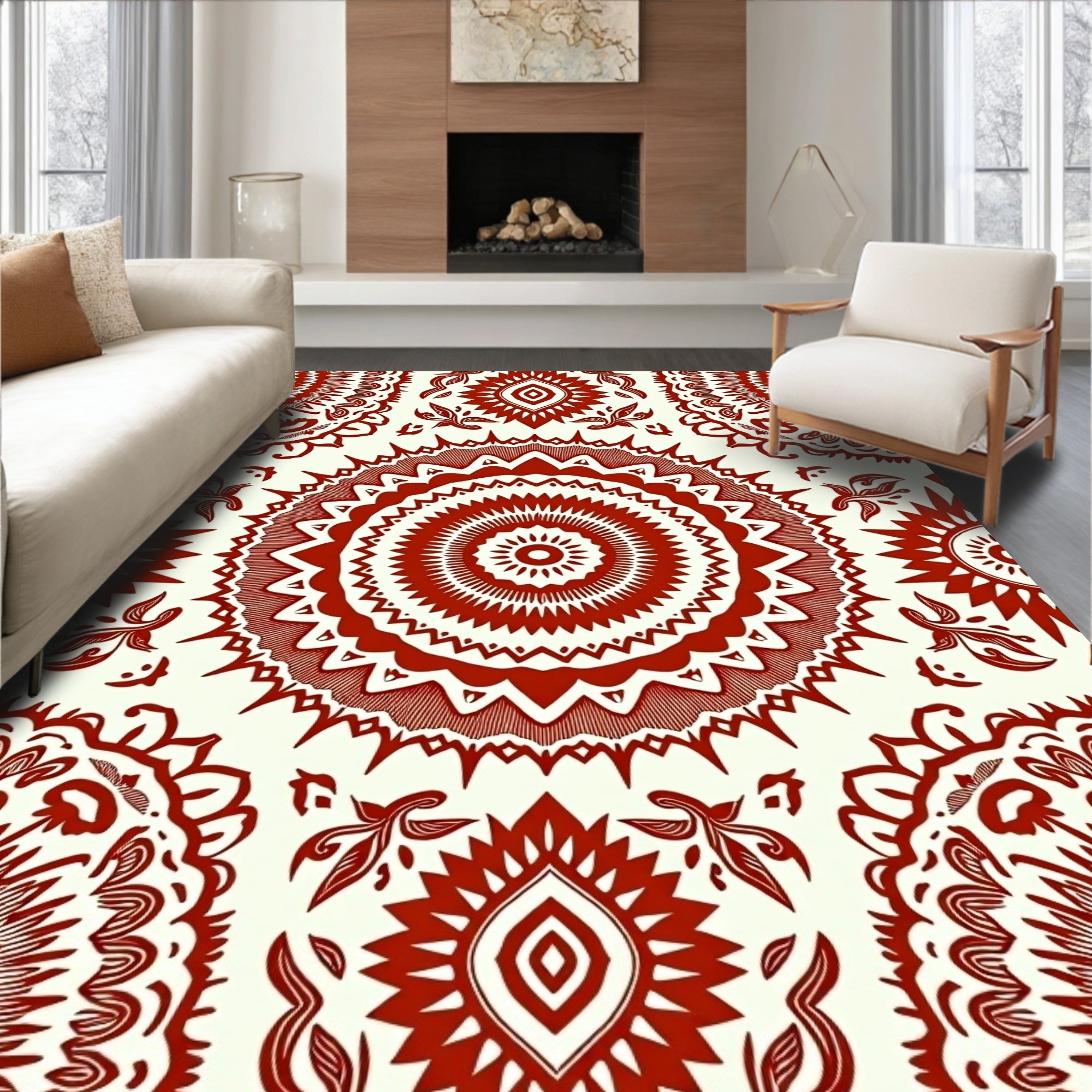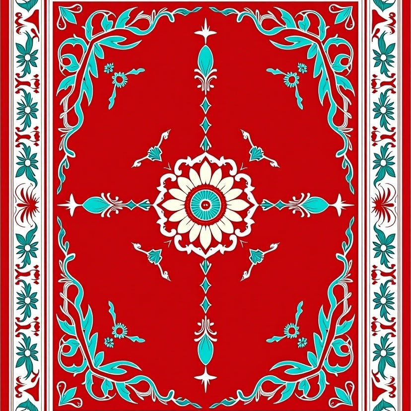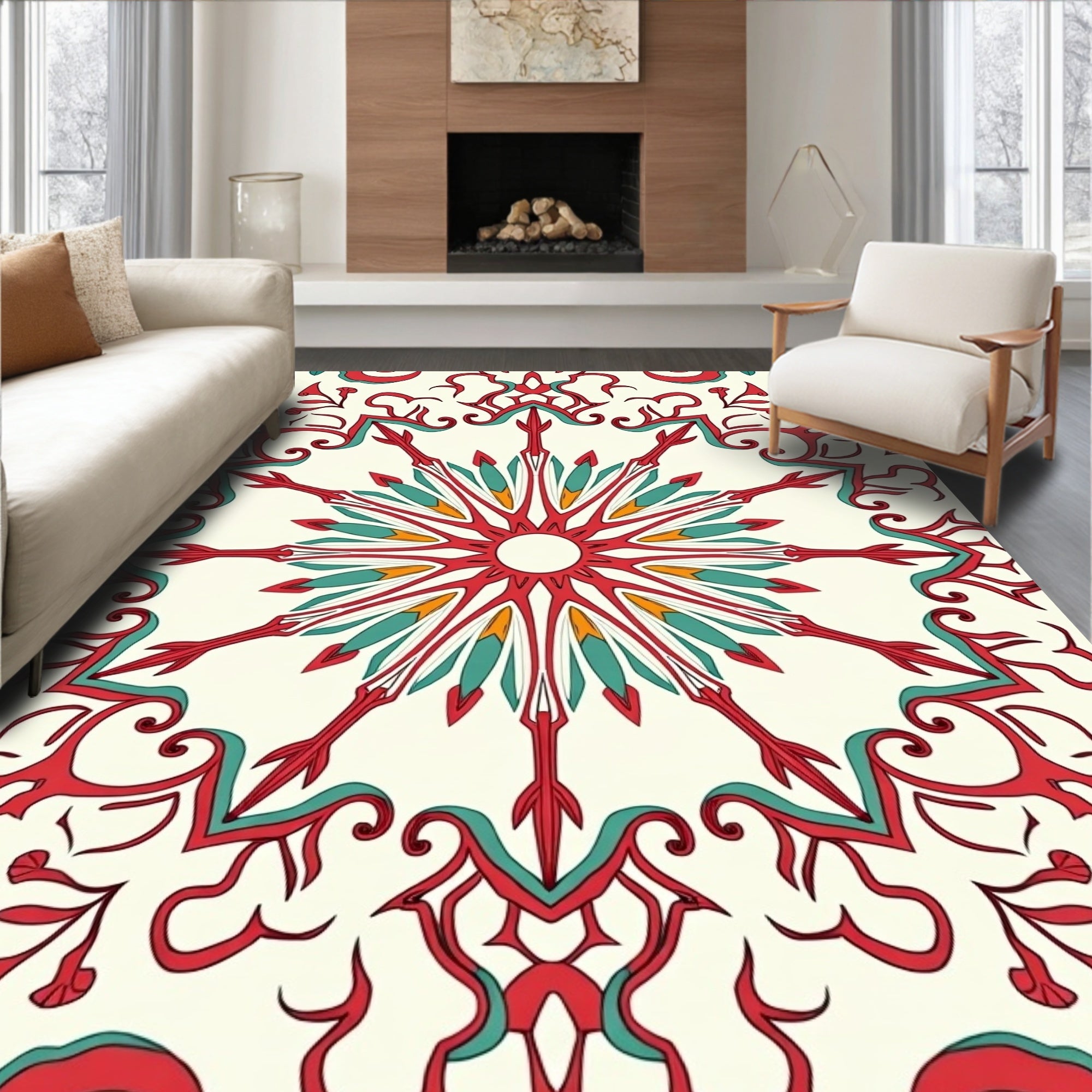 Boho Sunburst Design with Twisting Leaf Motifs(Red)