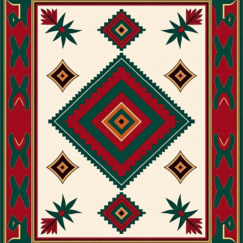 Modern Boho Interlocking Diamonds with Abstract Festive(Red)