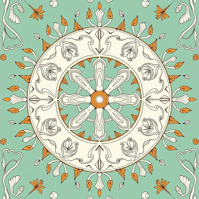 Festive Leaf Medallion with Interlocking Boho Motifs and Vintage Flourishes(Teal)