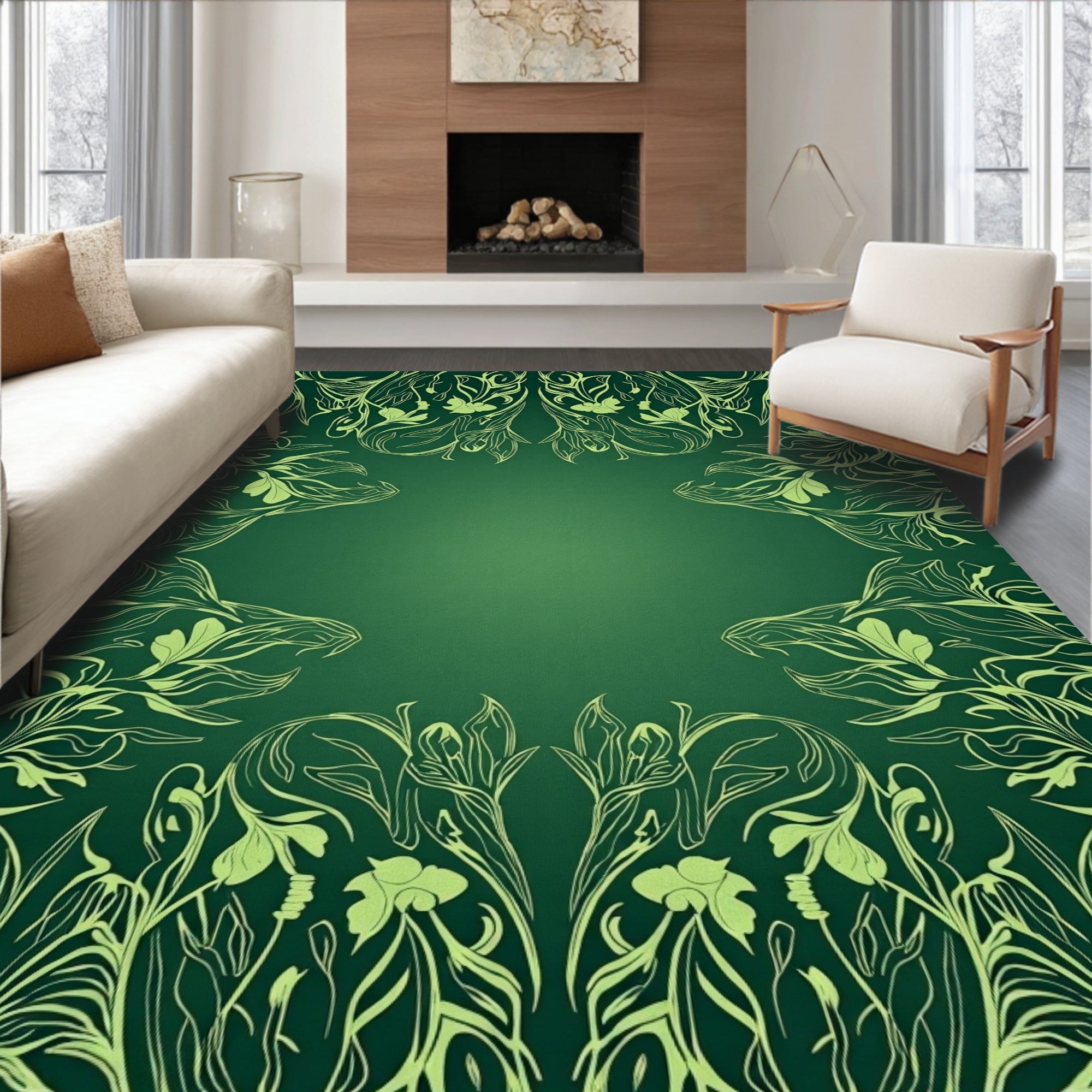 Boho Chic Abstract Floral Motifs with Forest Green and Black Contrast(Black)
