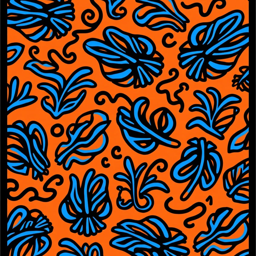 Boho Scrollwork with Floating Botanical (Orange)