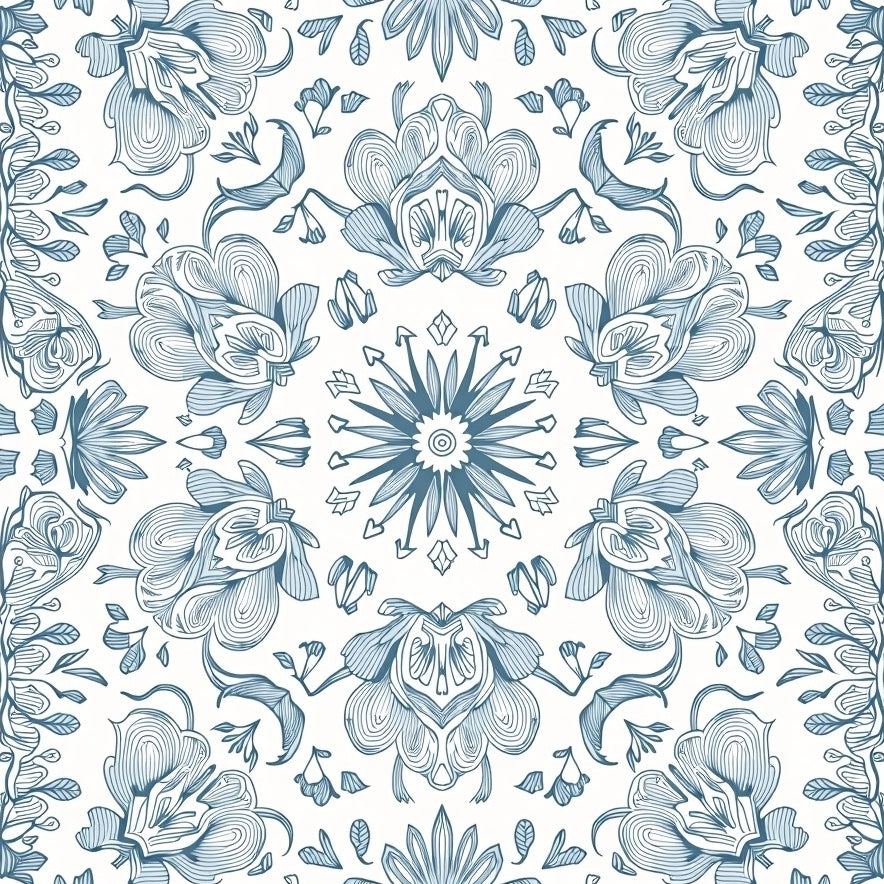 Artisan Boho Mosaic Featuring Ornate Symmetrical Flourish (Blue)