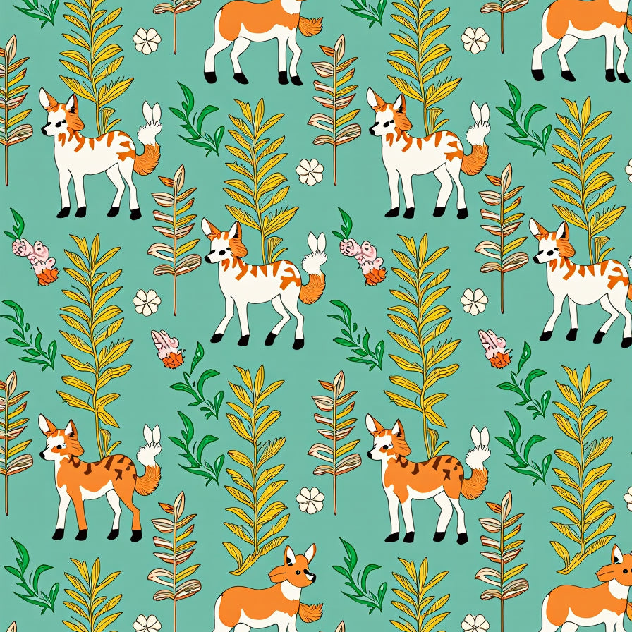 Retro Woodland Creatures Boho with Fern Branch Details (Blue)
