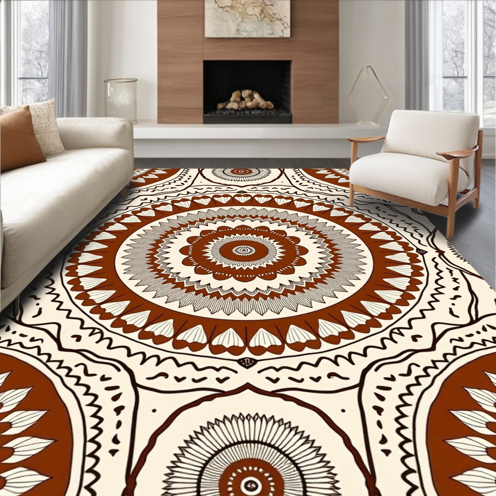 Vintage Medallion Boho Style Anti Slip Floor Cover (Black)