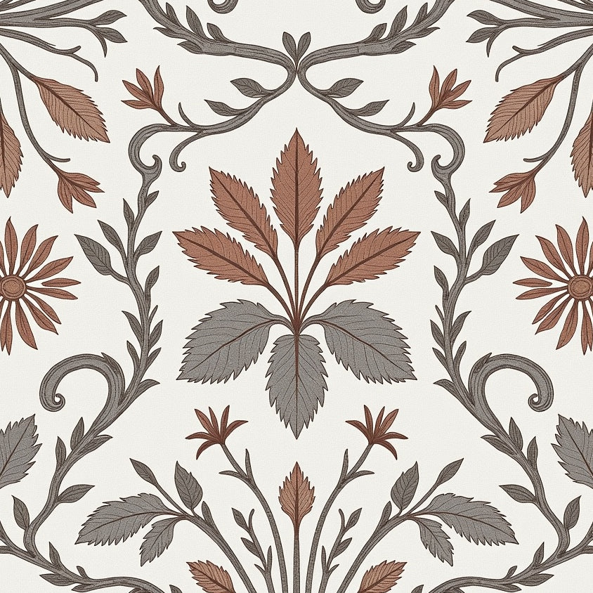 Retro Abstract Filigree with Symmetrical Damask Flourish(Brown)