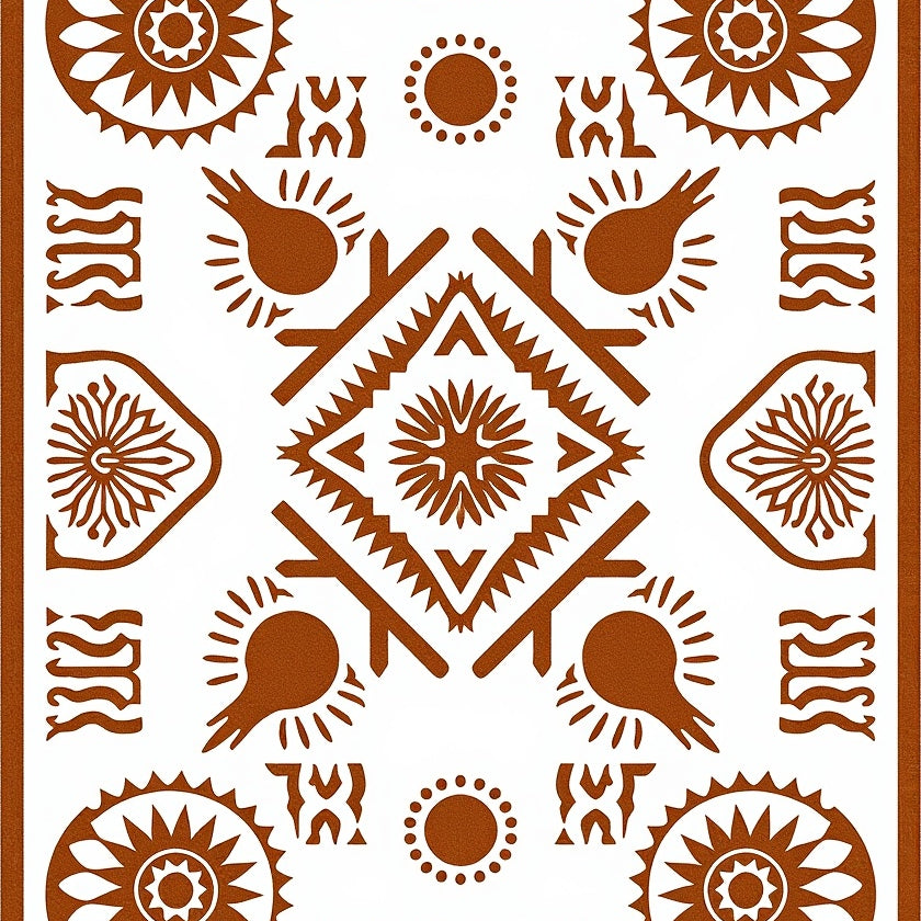 Aztec Revival with Interlocking Arrowhead and Sun Motifs(Brown)