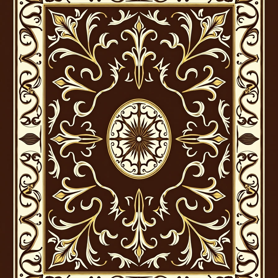 Vintage Medallion Ornate with Intricate Border Details(Brown)