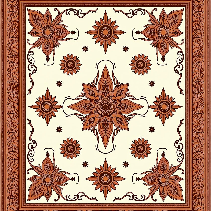 Sunset Medallion with Intricate Botanical Motifs(Brown)