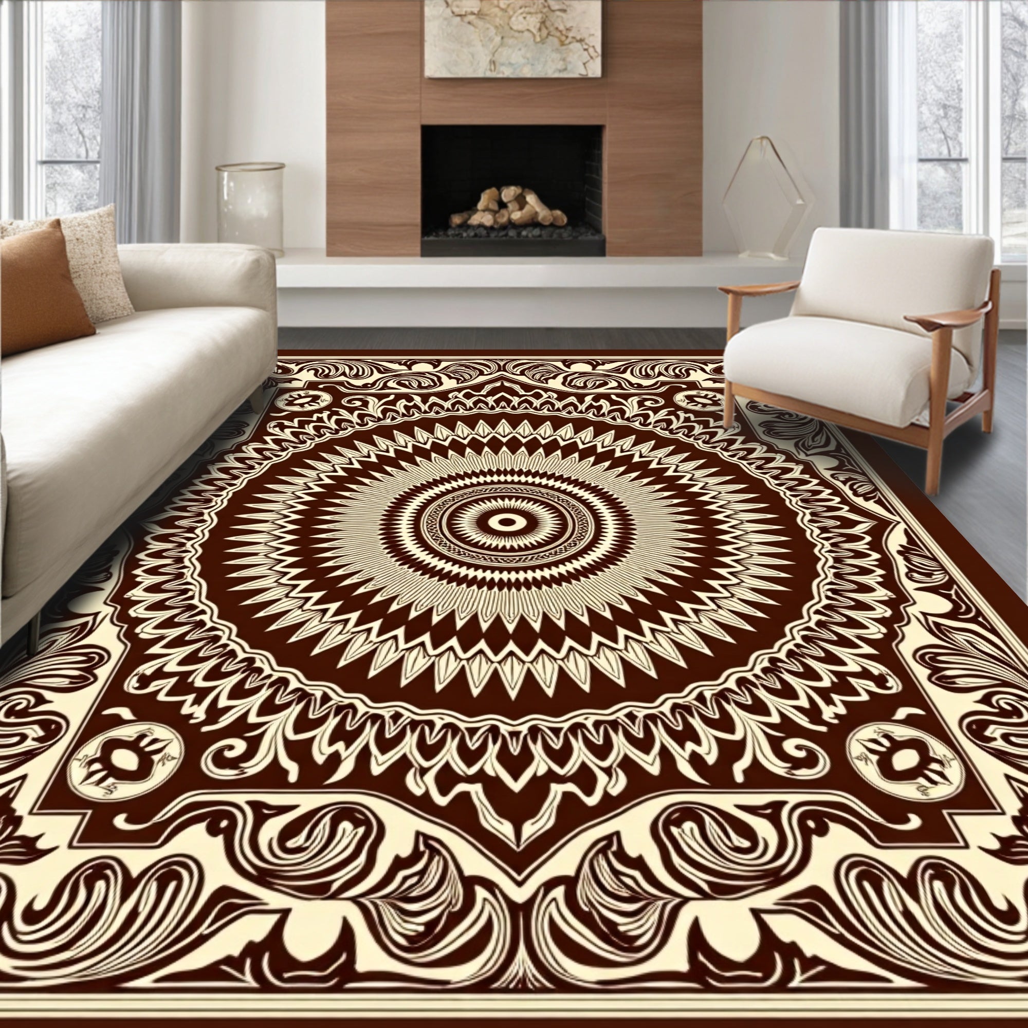 Vintage Medallion Ornate Fluffy with Traditional Decorative Center(Brown)