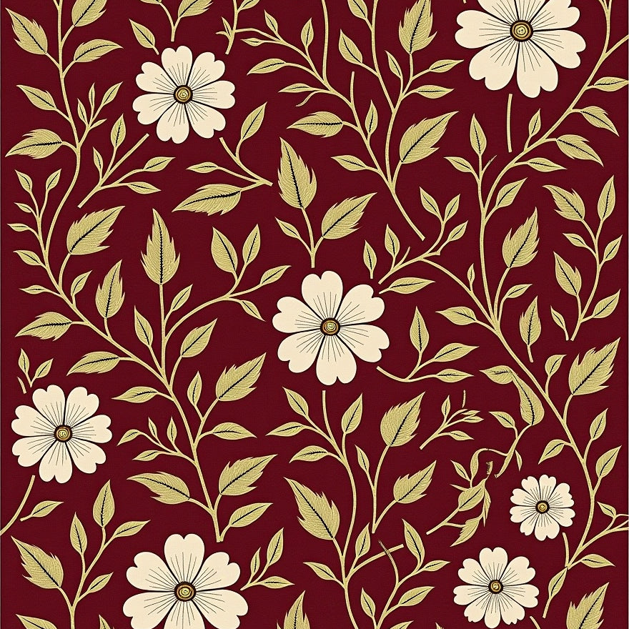 Classic Floral Vine with Botanical Garden Inspiration(Burgundy)