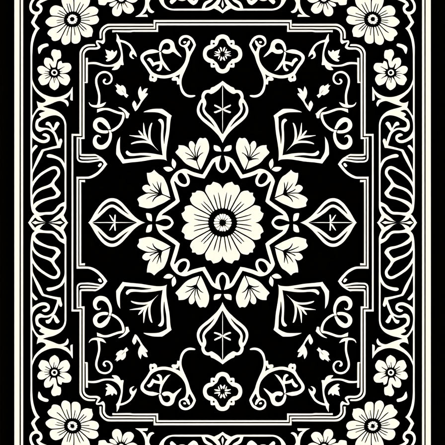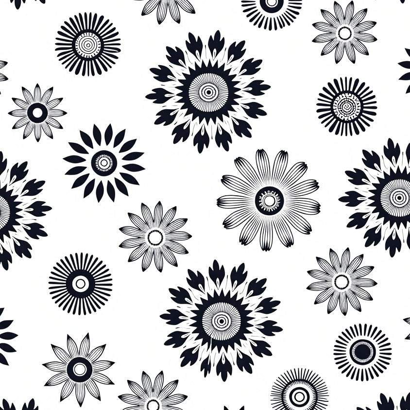 Burst with Symmetrical Floral Rosette Design (Black)