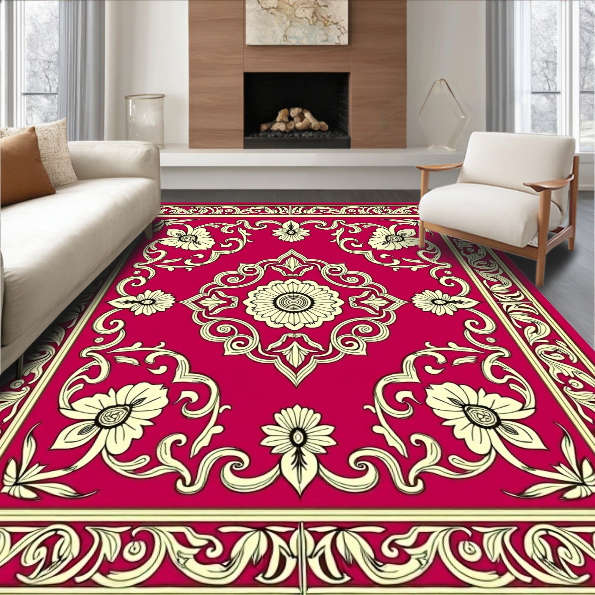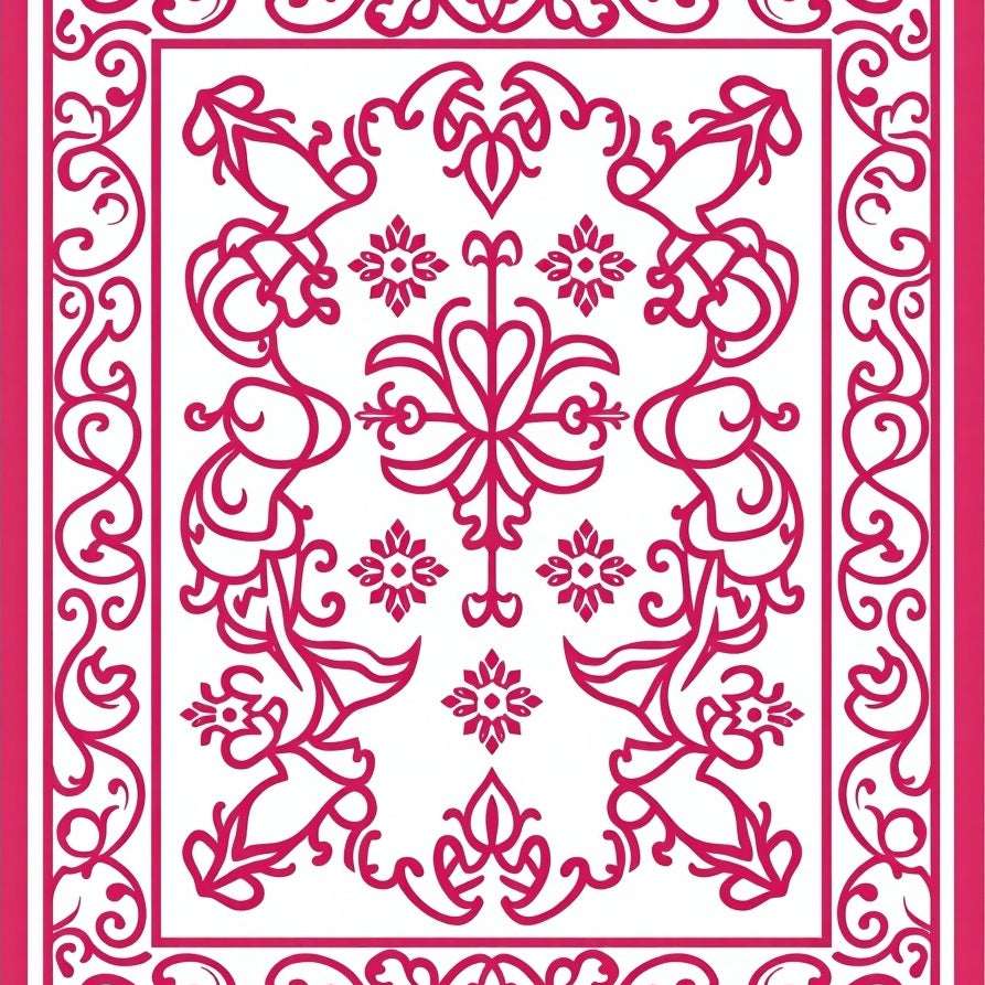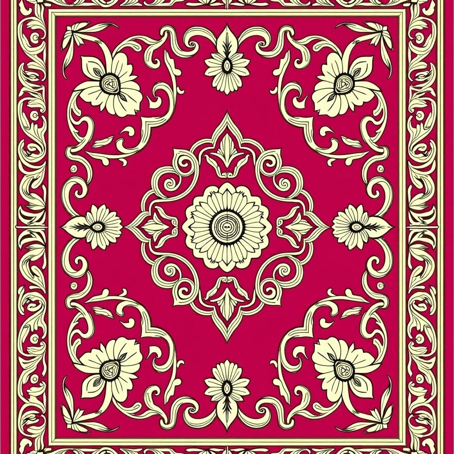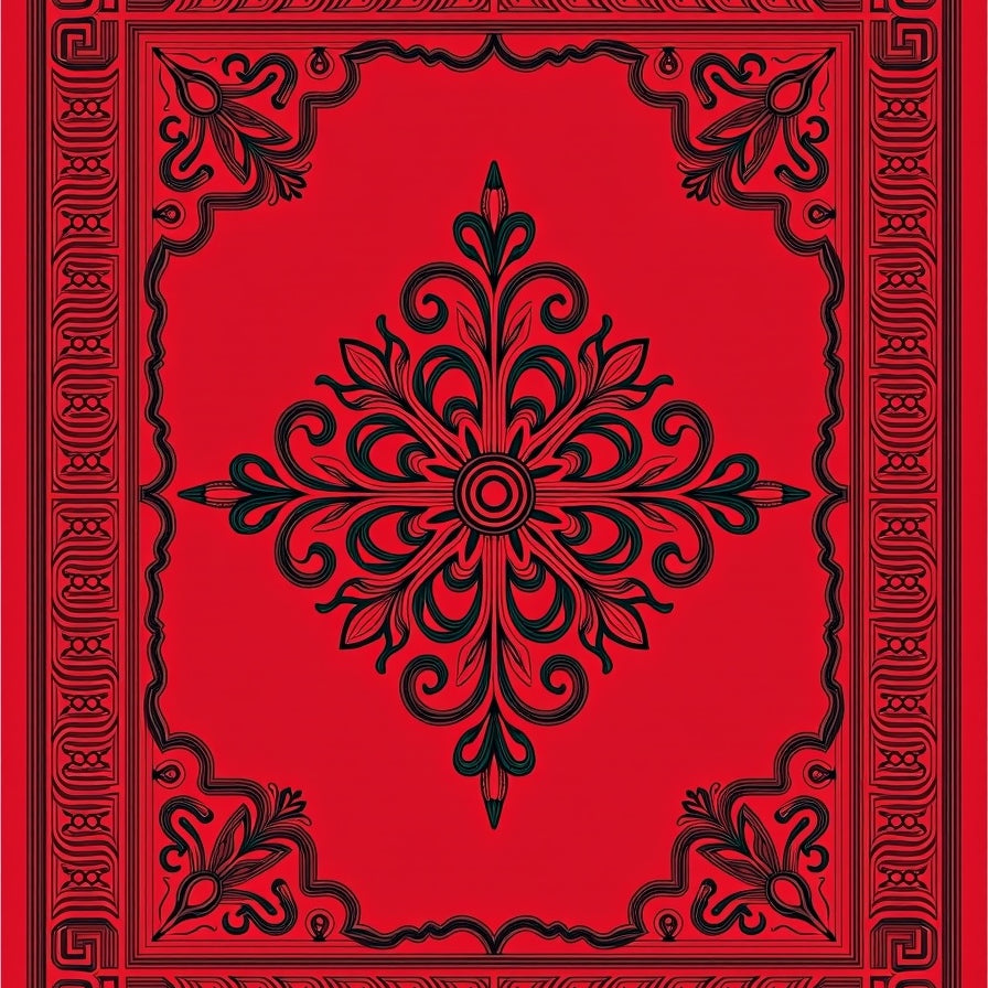 Victorian Garden Scrollwork Floral Medallion Vintage Accent (Red)