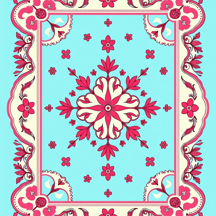 Boho Sunrise Medallion Featuring Ornate Floral Centerpiece (Pink)